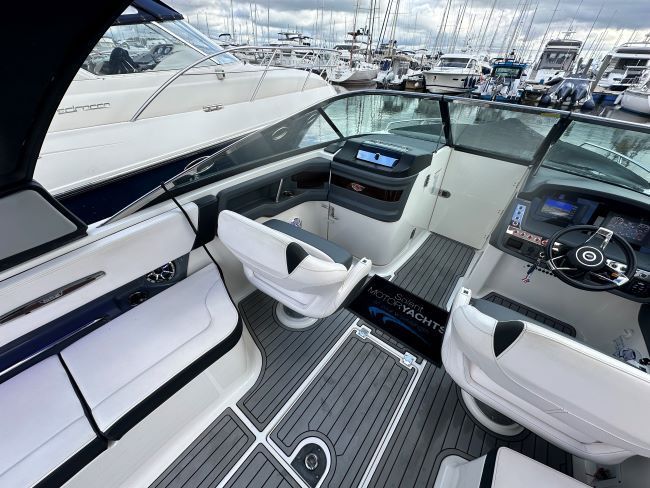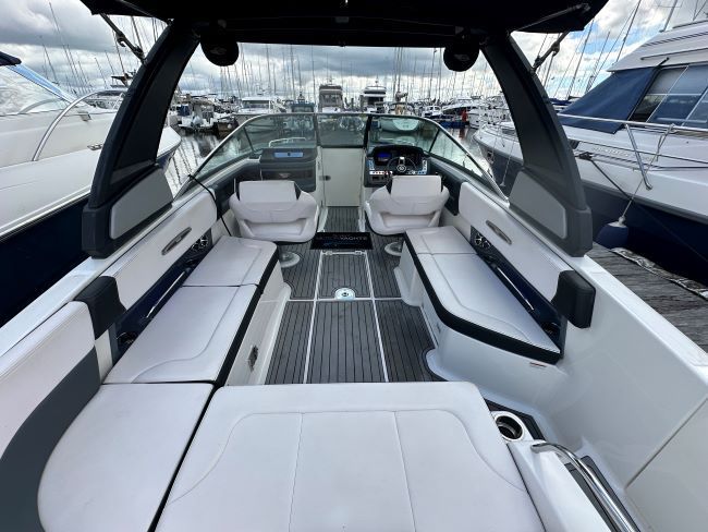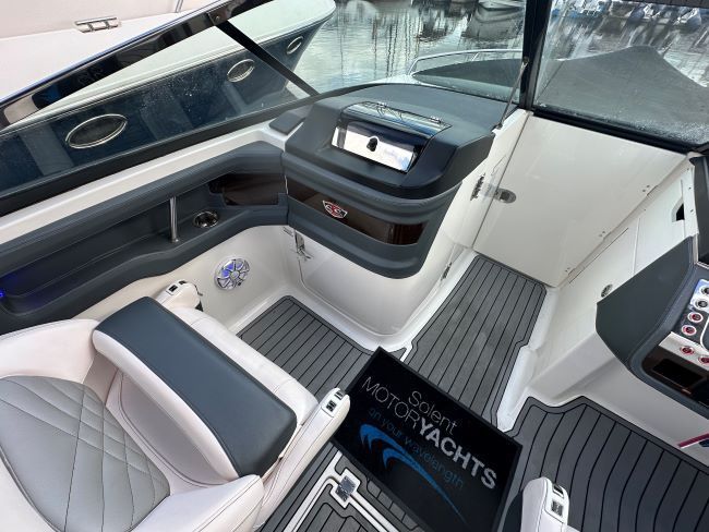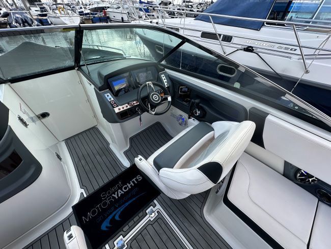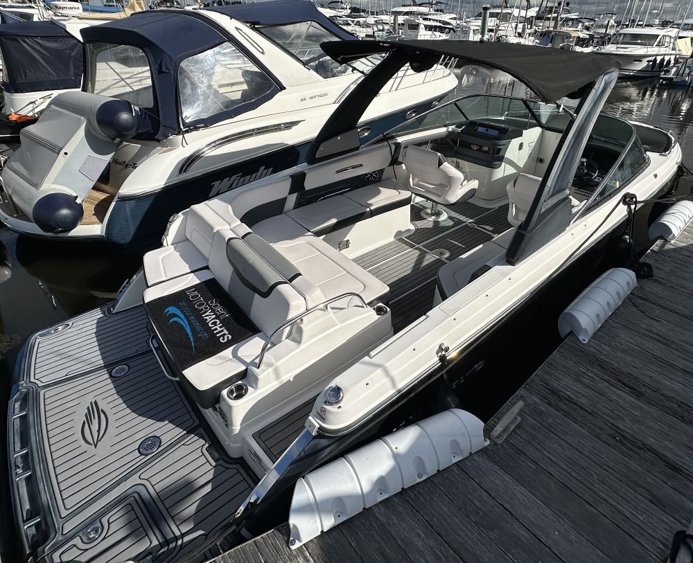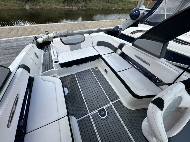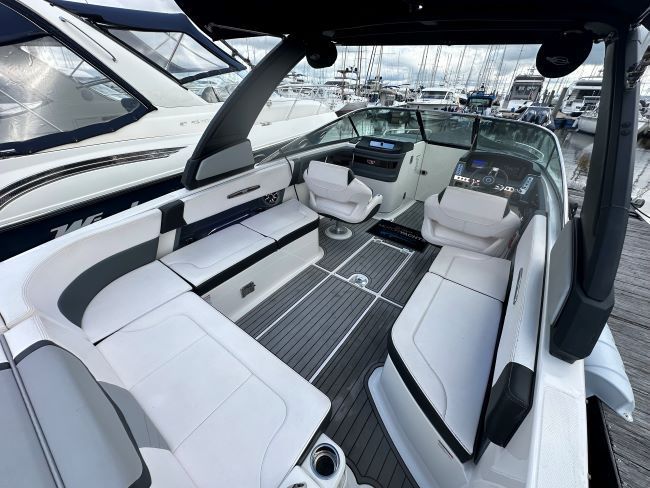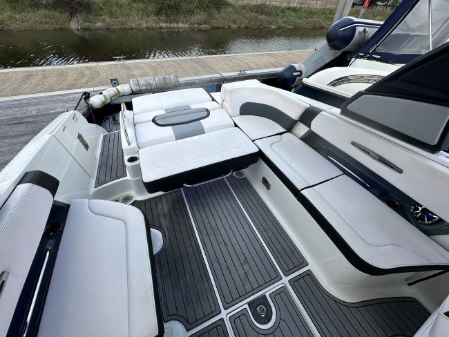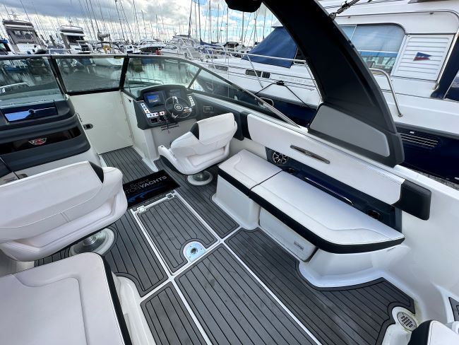 As you step aboard, you'll be greeted by the expansive cockpit boasting generous flexible seating and exquisite upholstery, providing a comfortable and stylish space for entertaining or soaking up the sun.