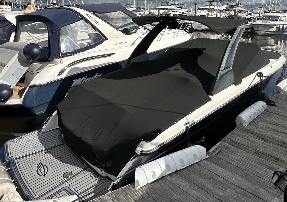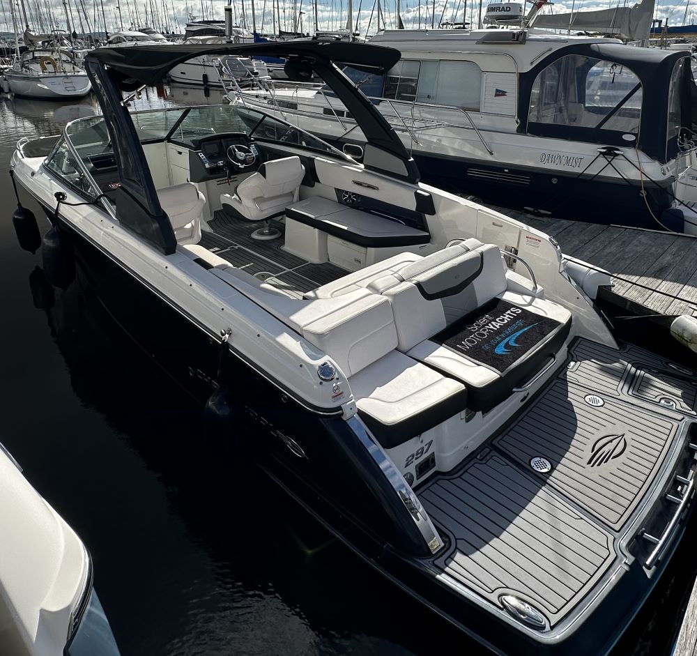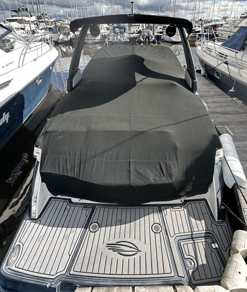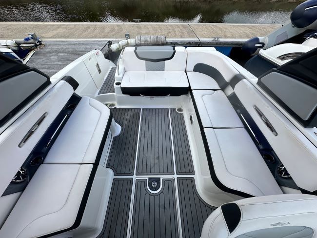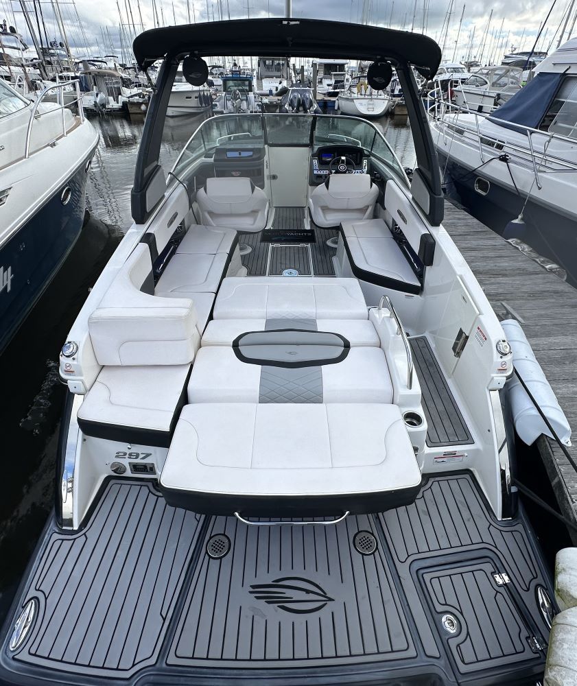 As you step aboard, you'll be greeted by the expansive cockpit boasting generous flexible seating and exquisite upholstery, providing a comfortable and stylish space for entertaining or soaking up the sun.