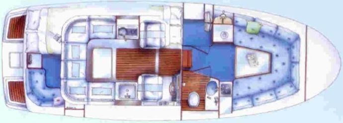 5 Berths in a Double aft cabin, Double mid cabin and Saloon double conversion