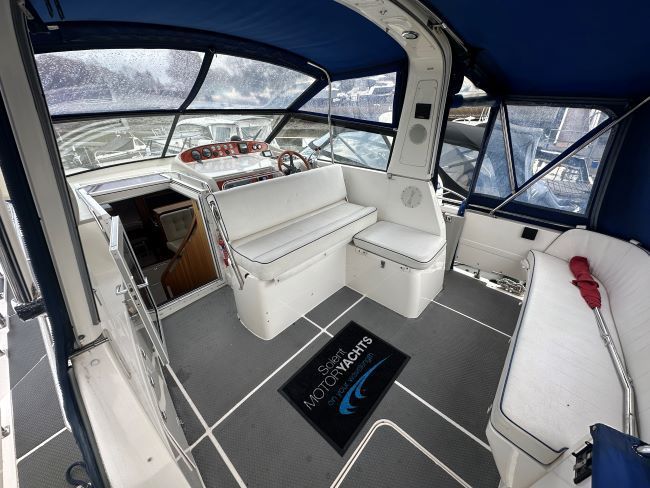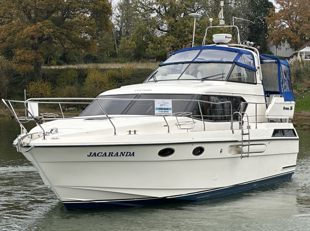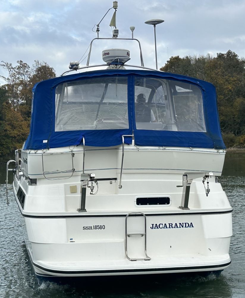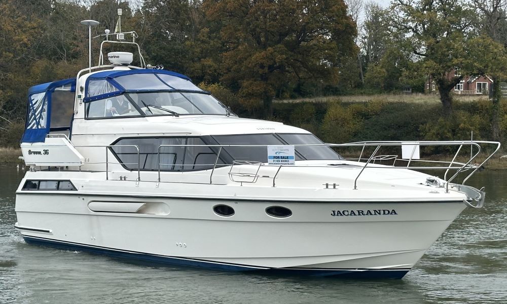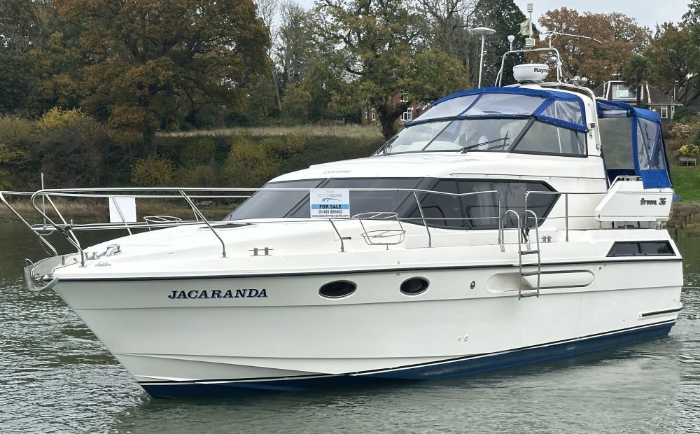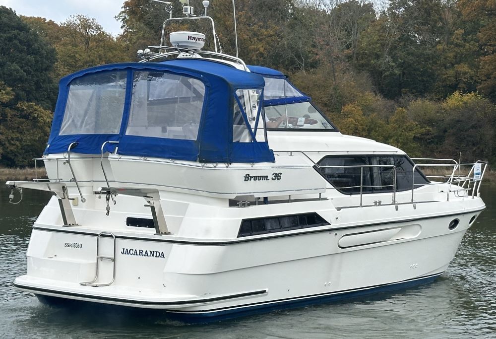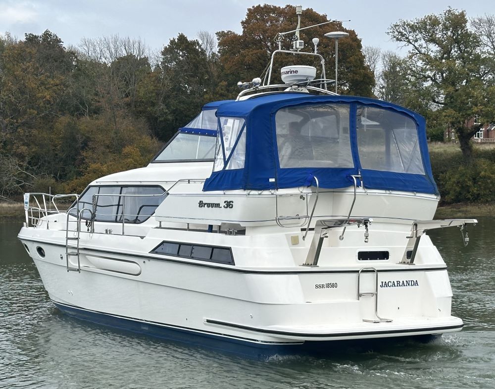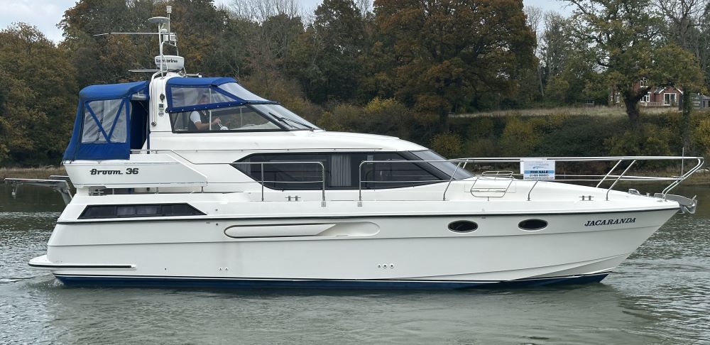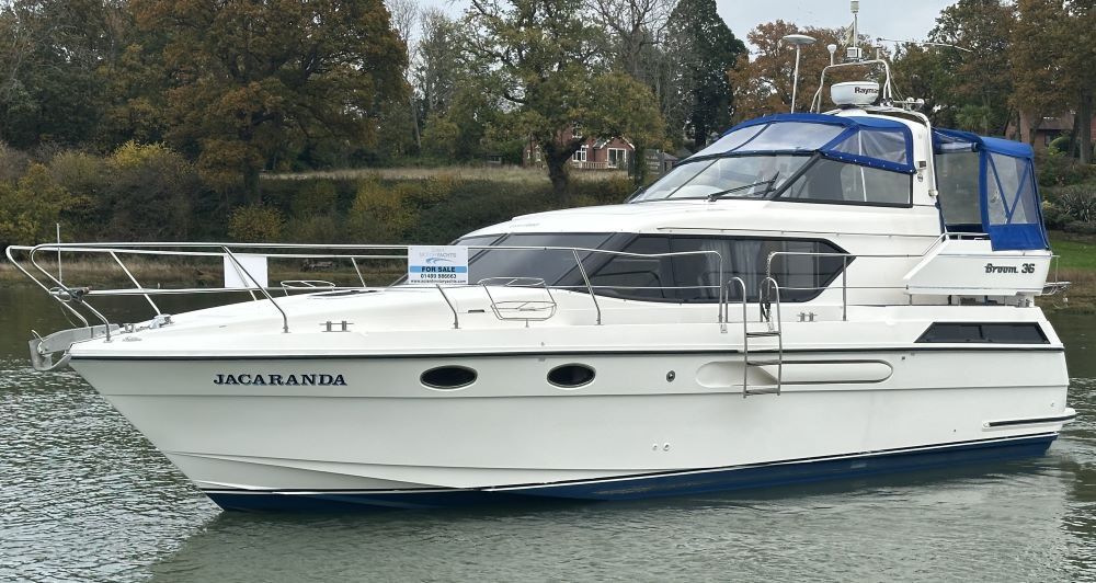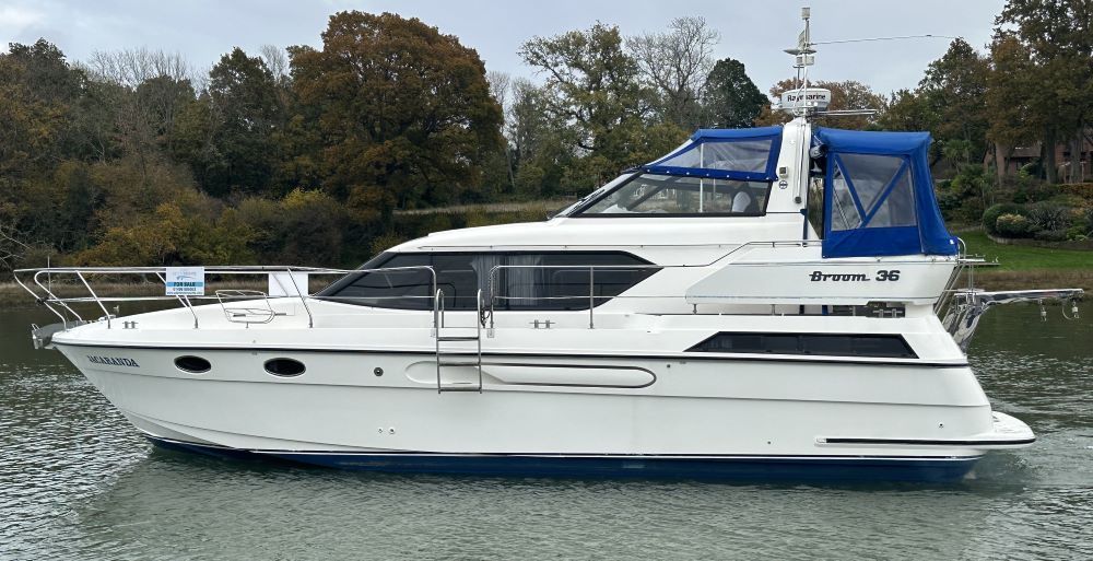 The Broom 36 was part of the fast offshore range from the well know Broom factory, with a planing hull but without a keel, making it a fast boat for offshore passages but still suitable for inland cruising.