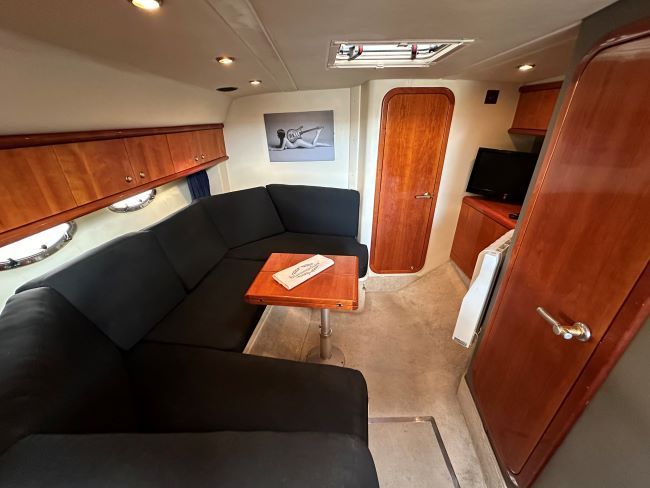 This 1995 Sunseeker Martinique 39 fitted with twin Volvo KAD42DP sterndrive engines has a classic sunseeker layout with spacious flexible cockpit, helm & co-pilot forward facing seats. Combined with a light and voluminous accommodation with berths for 6 in a forward offset double cabin, aft twin cabin and double berth in saloon.