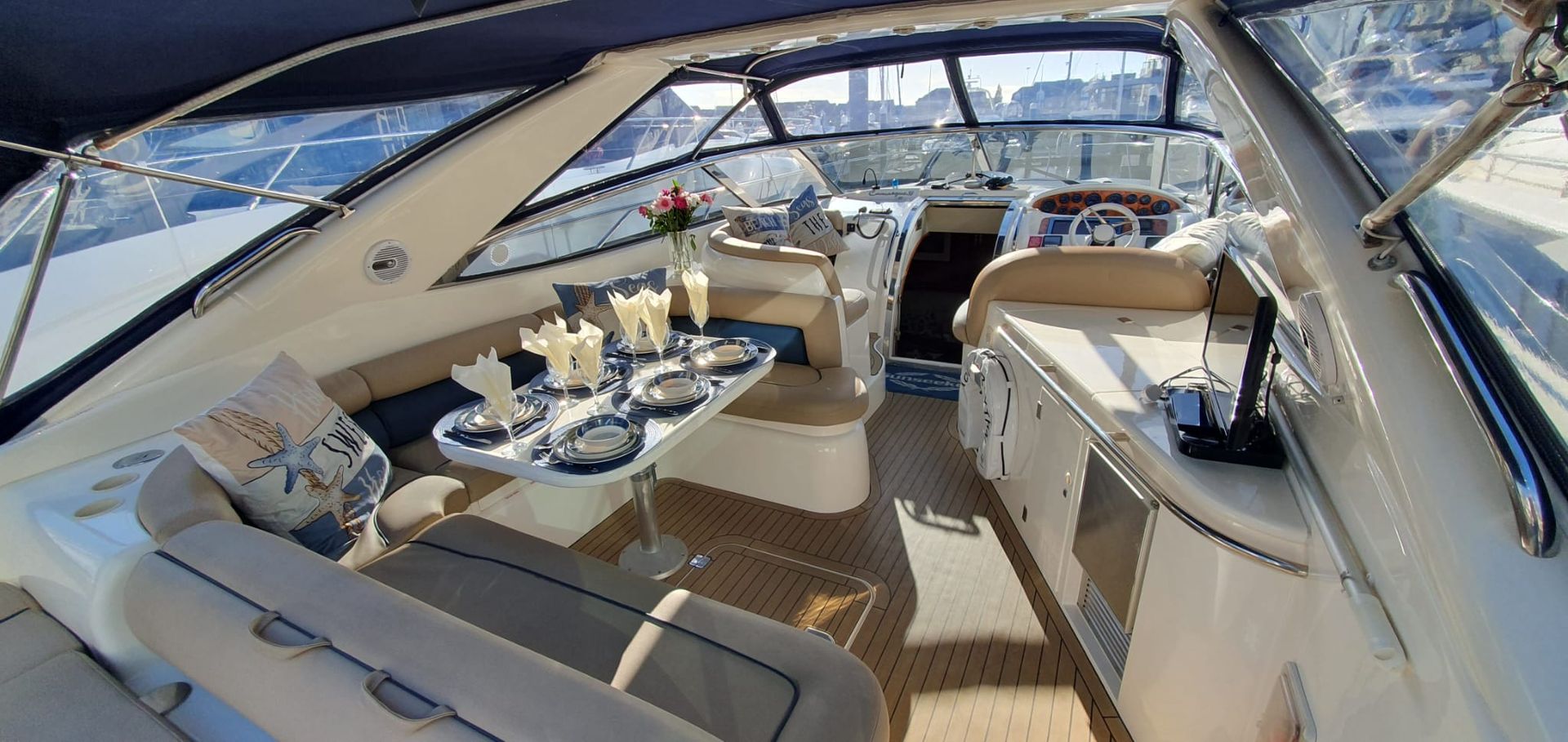 This beautifully maintained performance cruiser combines striking style with exceptional capability. Her cabins and saloon are fully air-conditioned, ensuring comfort in all conditions, while a reliable Kohler 10 kW diesel generator (1,500 rpm) provides power away from the dock.