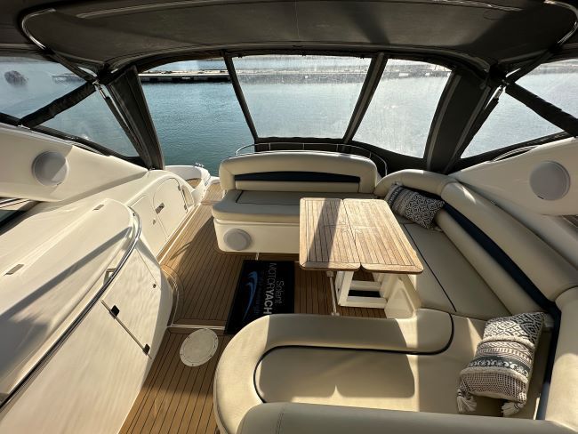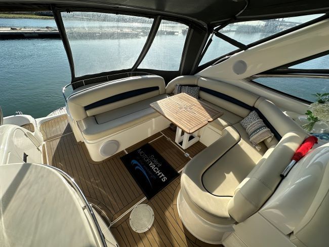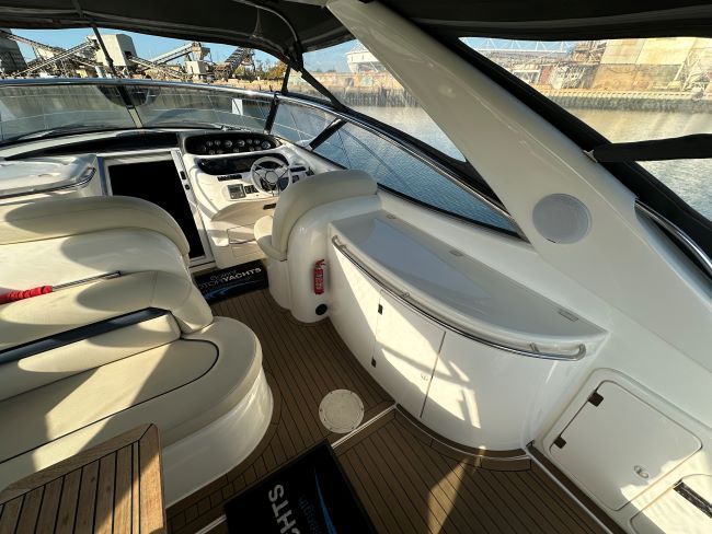 Access to cockpit via gate to starboard, with spacious seating, fully laid in Flexi-Teak and recently re-upholstered to a very high standard.