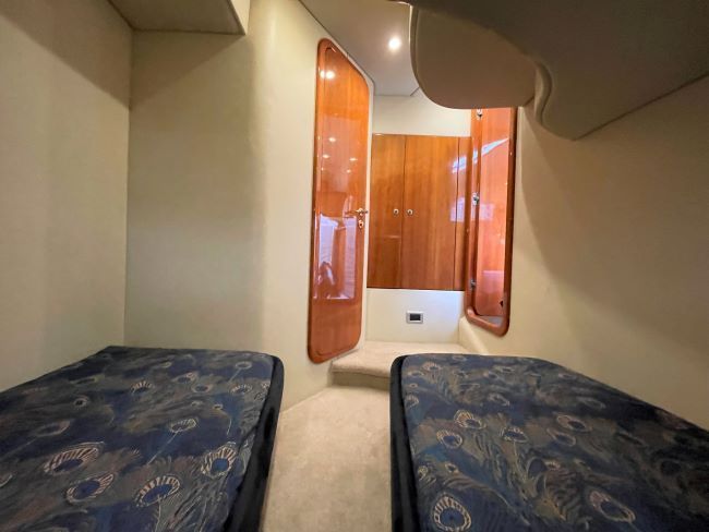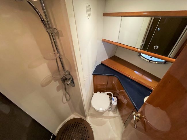 The second cabin is to aft with twin beds and en-suite heads (electric toilet, sink and shower).