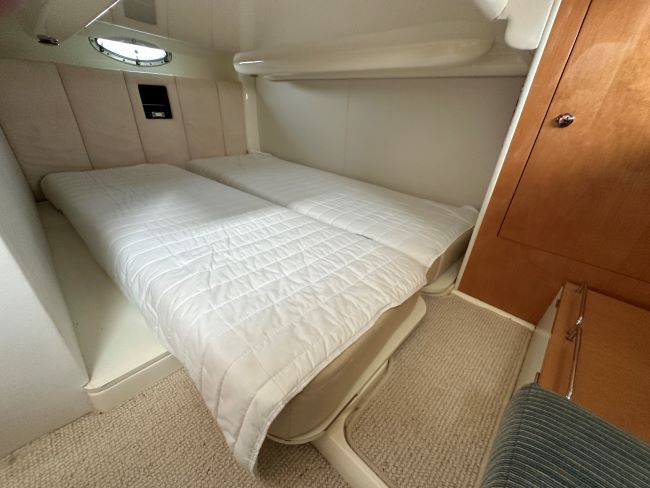 Aft cabin with twin beds that slide together to make a double berth under the cockpit floor.