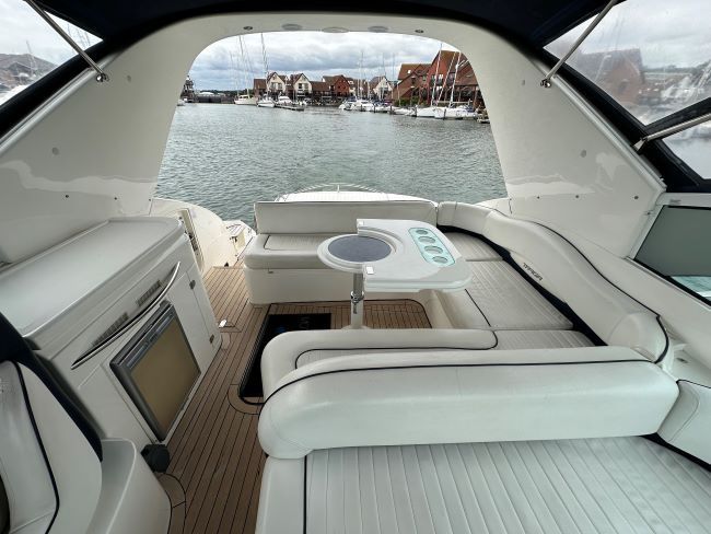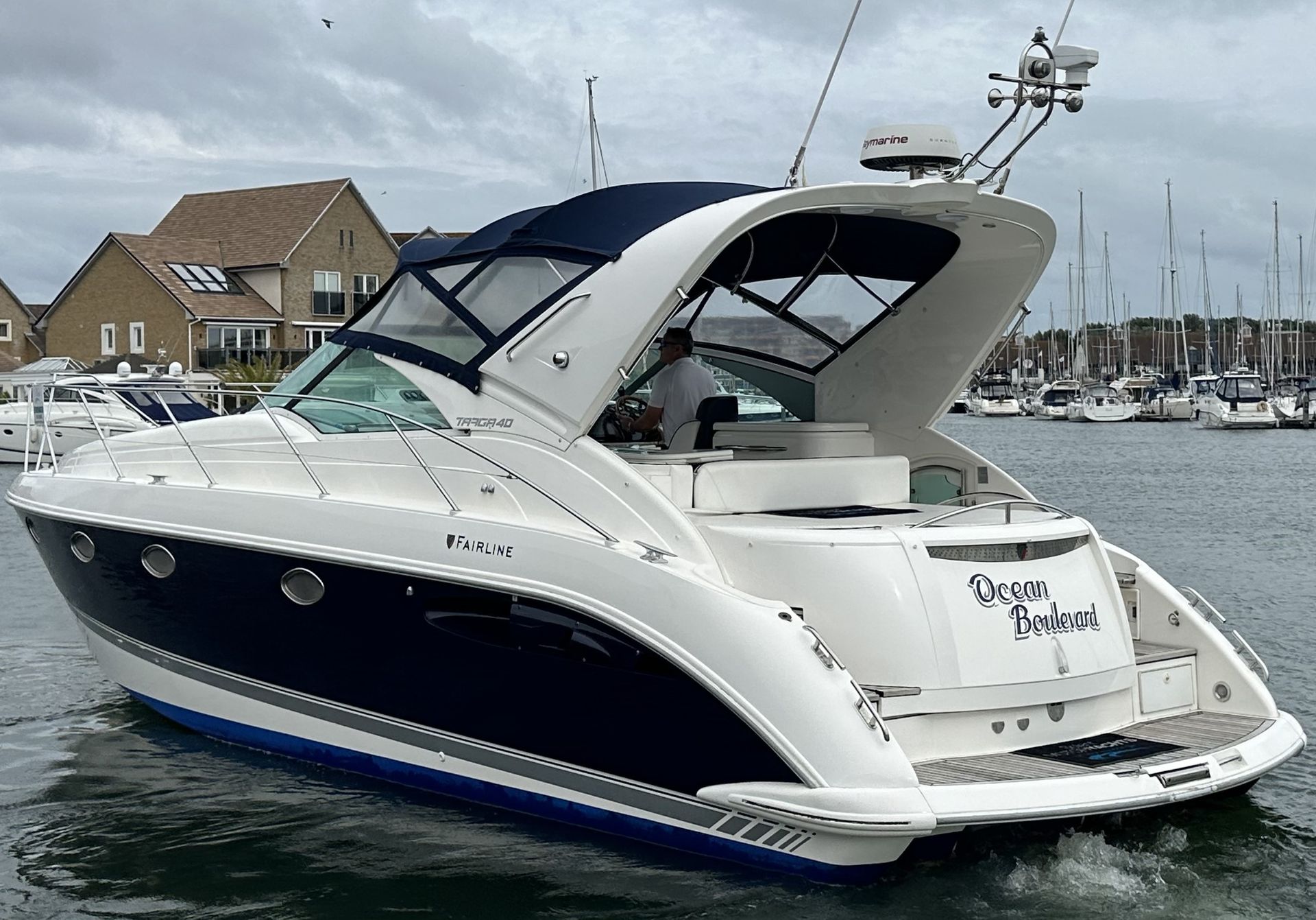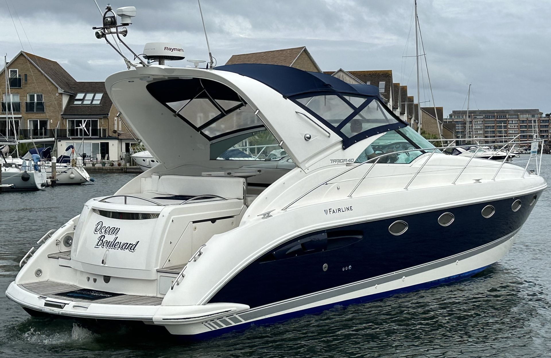 A great opportunity to purchase the ever popular Fairline Targa 40 with 6 berths in 2 cabins plus saloon double conversion, powered by twin Volvo Penta KAD44-260hp engines with a great spec including electronic Volvo controls, bow thruster, Recent Raymarine Axiom GPS plotter with Quantum Radar, auto pilot, DSC VHF, New camper covers, cockpit wet bar with BBQ, Fridge and sink and with cream upholstery and carpets.
