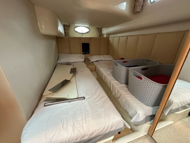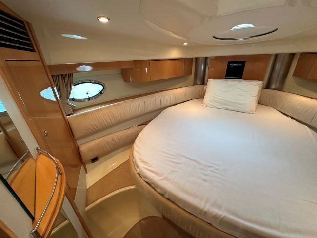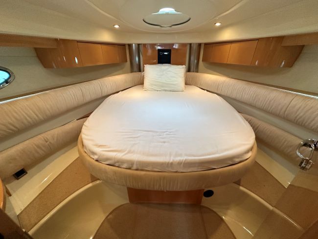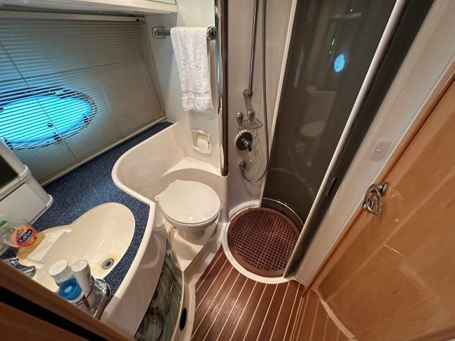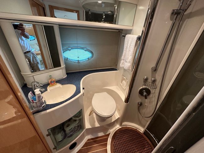 Double island forward master cabin with plenty of storage and en-suite access to day head with separate shower.