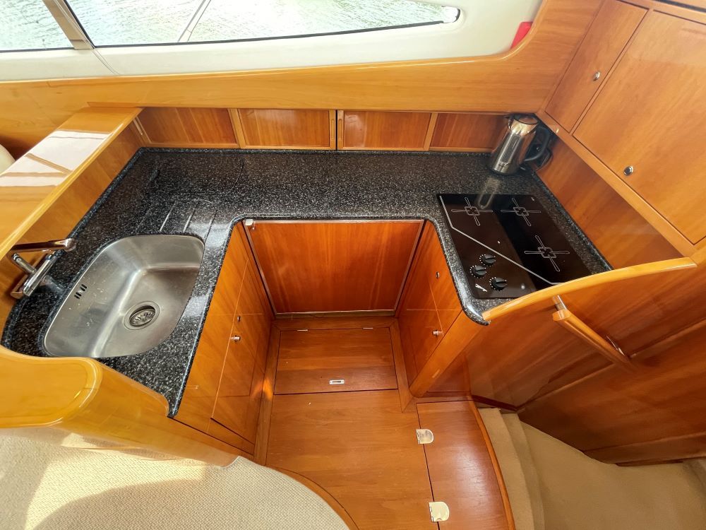 This is an elegant and comfortable boat that offers 6 berths in the 3 cabins, high gloss woodwork and cream leather to continue the luxury feel.