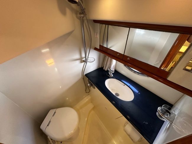 The master cabin is in the bow with a generous double bed with en-suite heads with electric toilet, sink and separate shower compartment.
