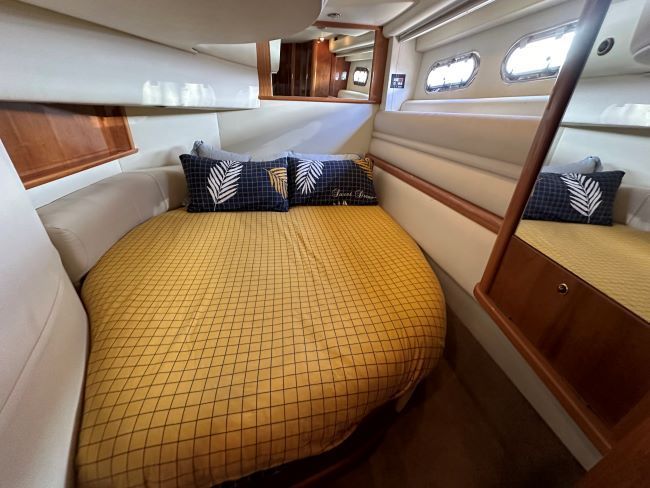 Recently re-fitted with new flybridge upholstery (in premium fabric), Garmin MFD radar / plotter / GPS, flybridge barbeque, flybridge tonneau cover, bimini cover with frame, full cockpit canopy, fully deep cleaned and polished, antifouled and ready to go.