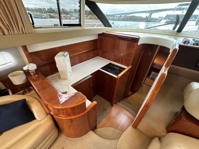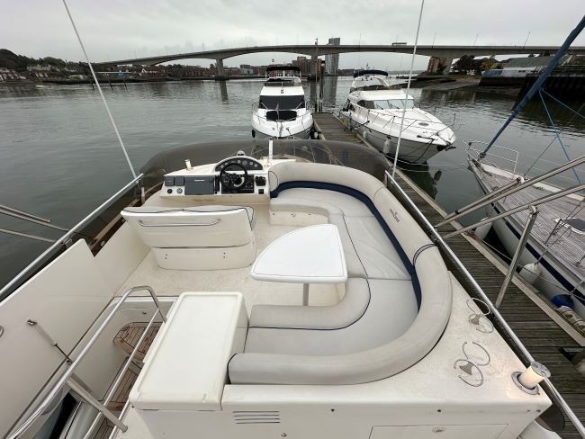 This is an excellent example of the ever popular Princess 45 that boasts a great inventory including Bow thruster, 4kw generator, Raymarine GPS/HD radar plotters, Raymarine auto-pilot, S/S passerelle, Pop up TV, cherry joinery with cream upholstery to name but a few, and is available at exceptional value.