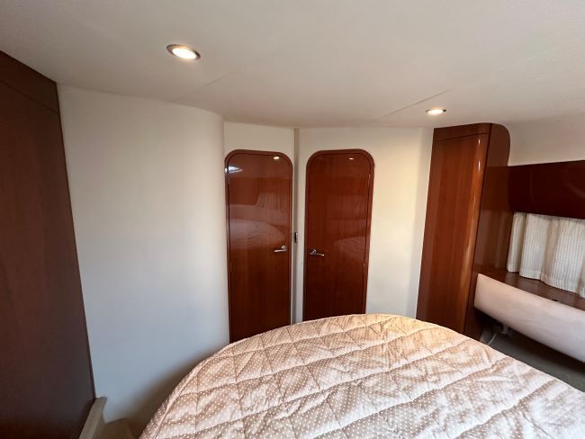 Master cabin forward with an island double bed, plenty of storage. En-suite head compartment with toilet, basin and separate shower.