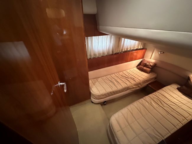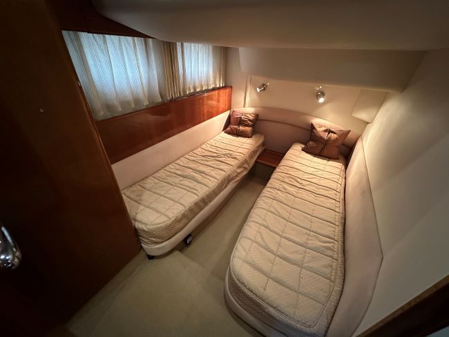 Starboard VIP cabin with twin berths and en-suite access to day head.