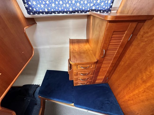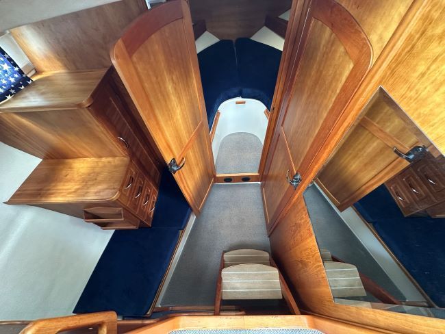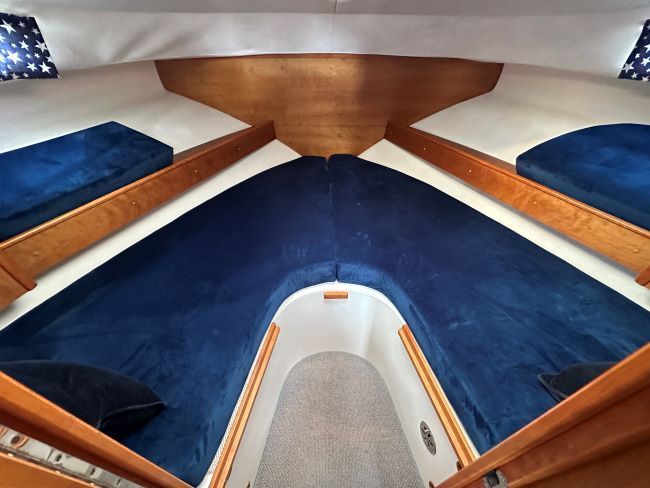 A second mid double berth is aft of the forward cabin and accessed to port.