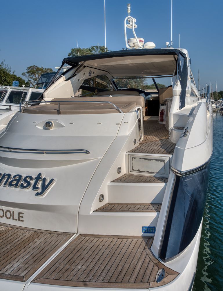 The Portofino 53 HT was one of the first to offer an electric sliding hard top to get away from all the canvas over a vast social cockpit combined with comfortable accommodation for 6 in 3 cabins.