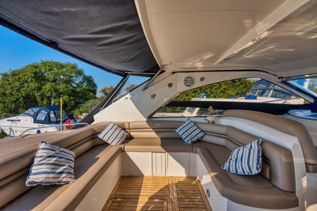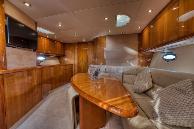 Finished in high gloss cherry joinery with cream leather upholstery and cream carpets - an absolute timeless classic Sunseeker design!