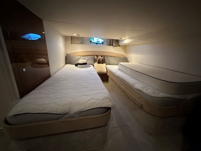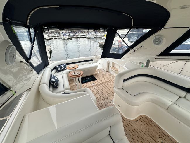 The Princess V42 delivers ultra-responsive handling and thrilling acceleration which is something to behold. When entertaining, the spacious and sociable cockpit enjoys flexible . Below deck, the well-proportioned galley enjoys plentiful natural light and intelligent storage. The master cabin has impressive headroom, space and light, whilst the aft cabin with infill makes a large double. With hand-stitched detailing, handcrafted cabinetry and spacious accommodation, its a craft built without compromise.