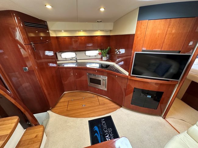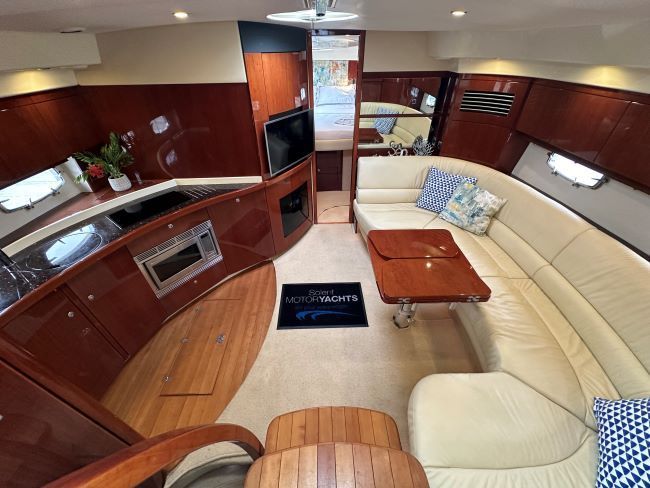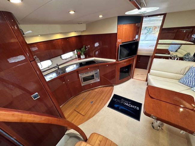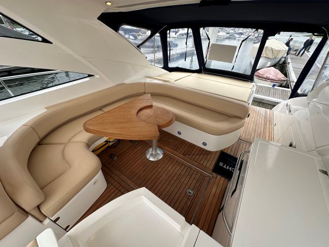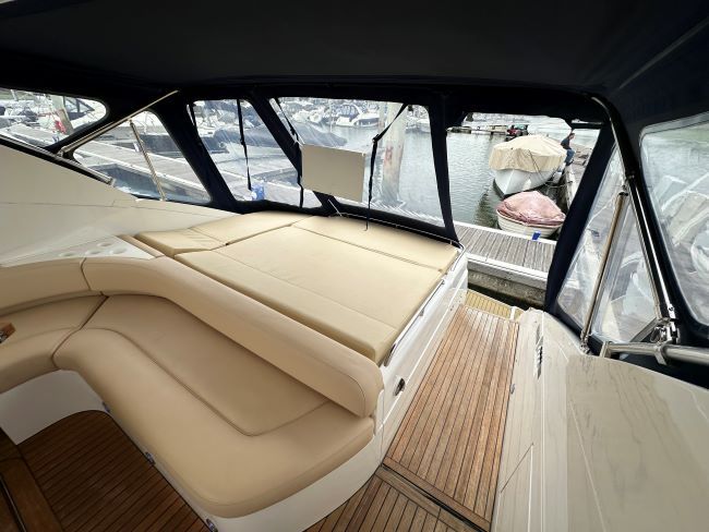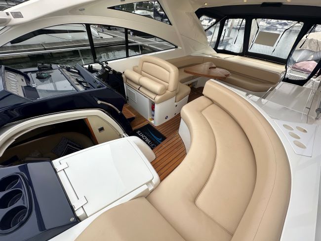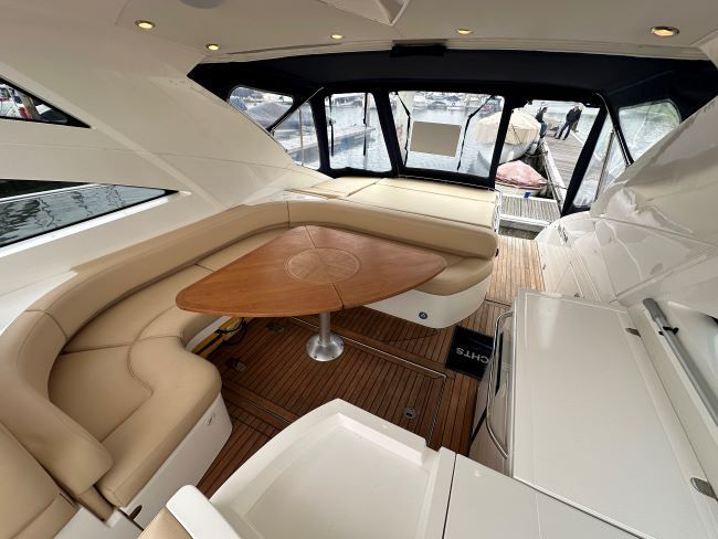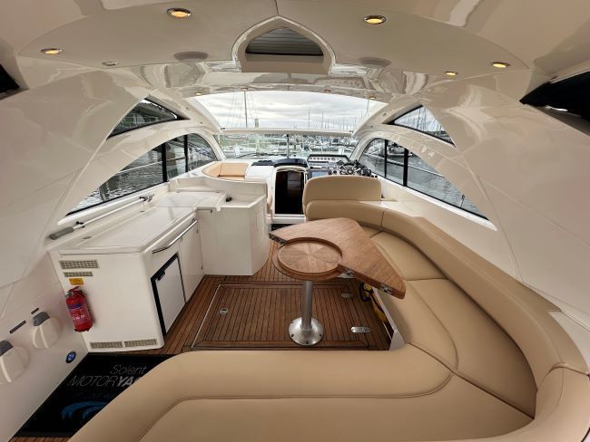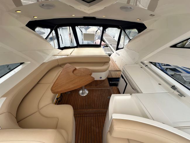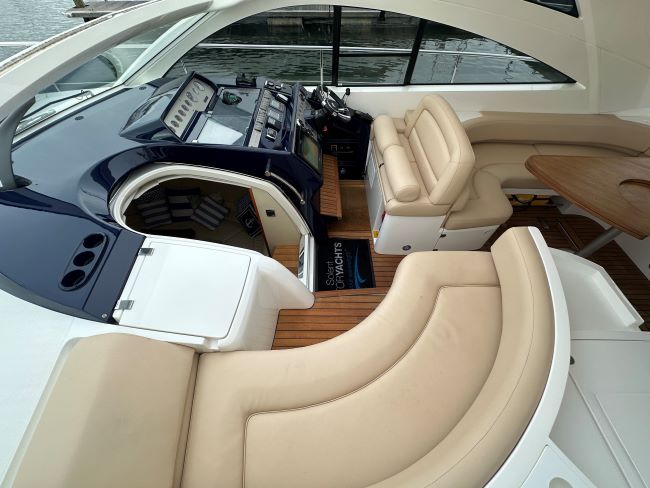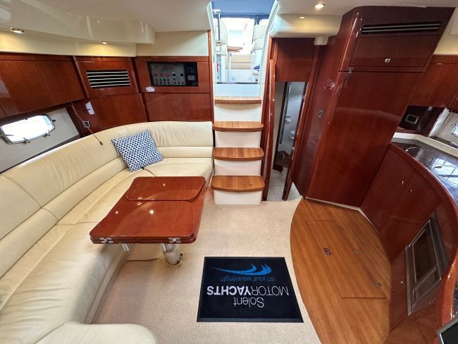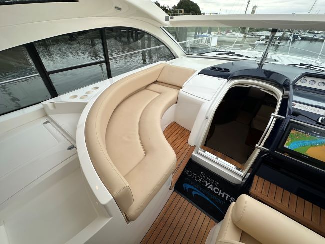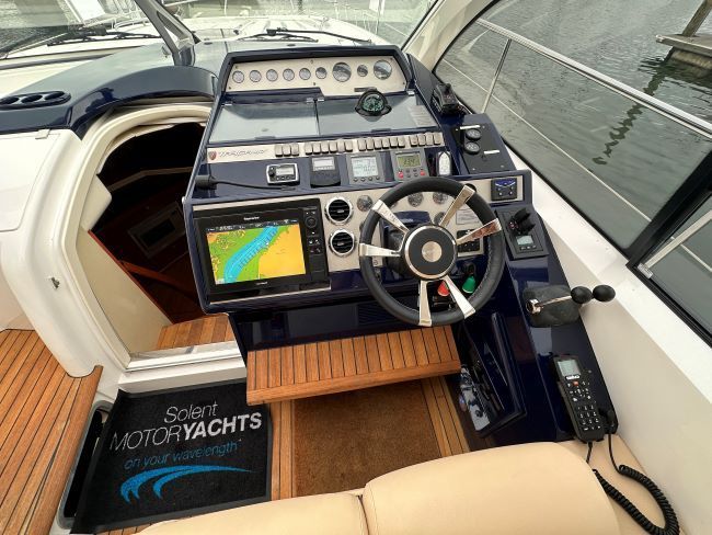 This example is beautifully presented with cream cockpit and interior upholstery and cherry woodwork that is ready to cruise the south coast in style and comfort.