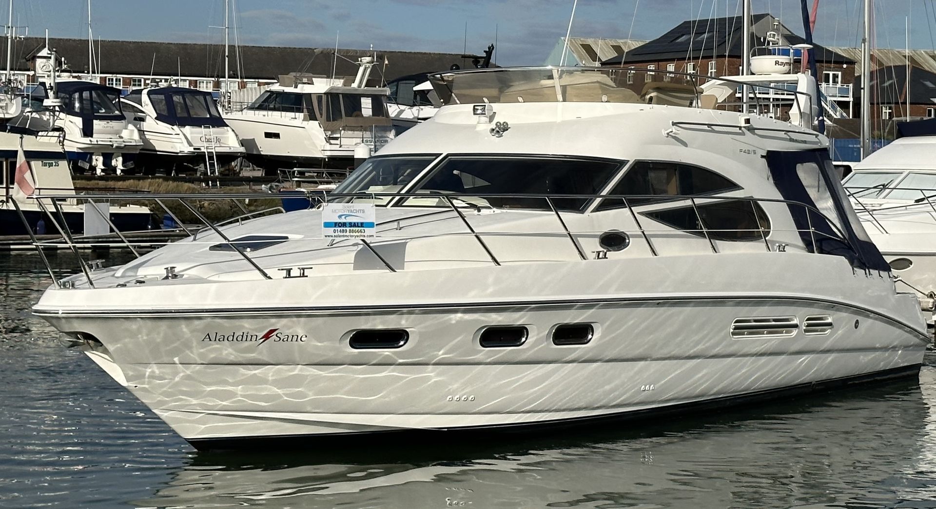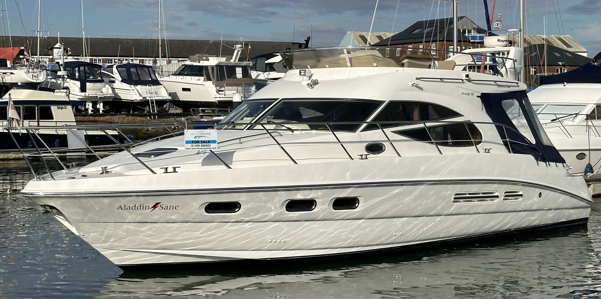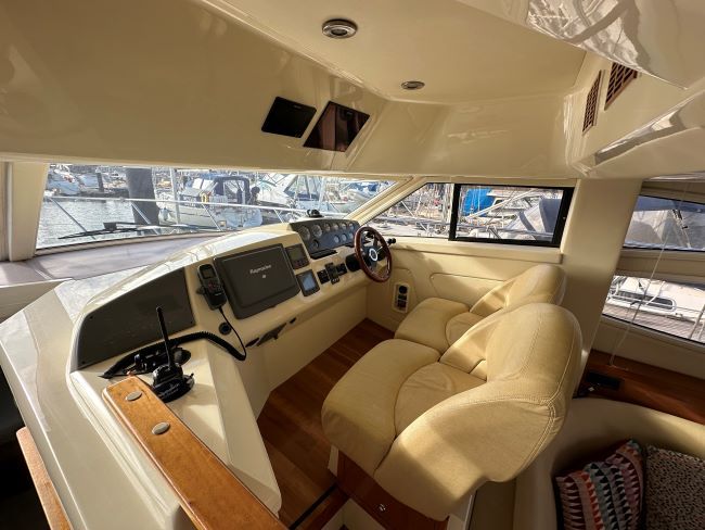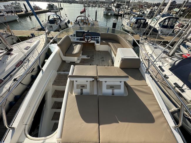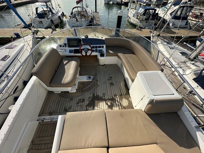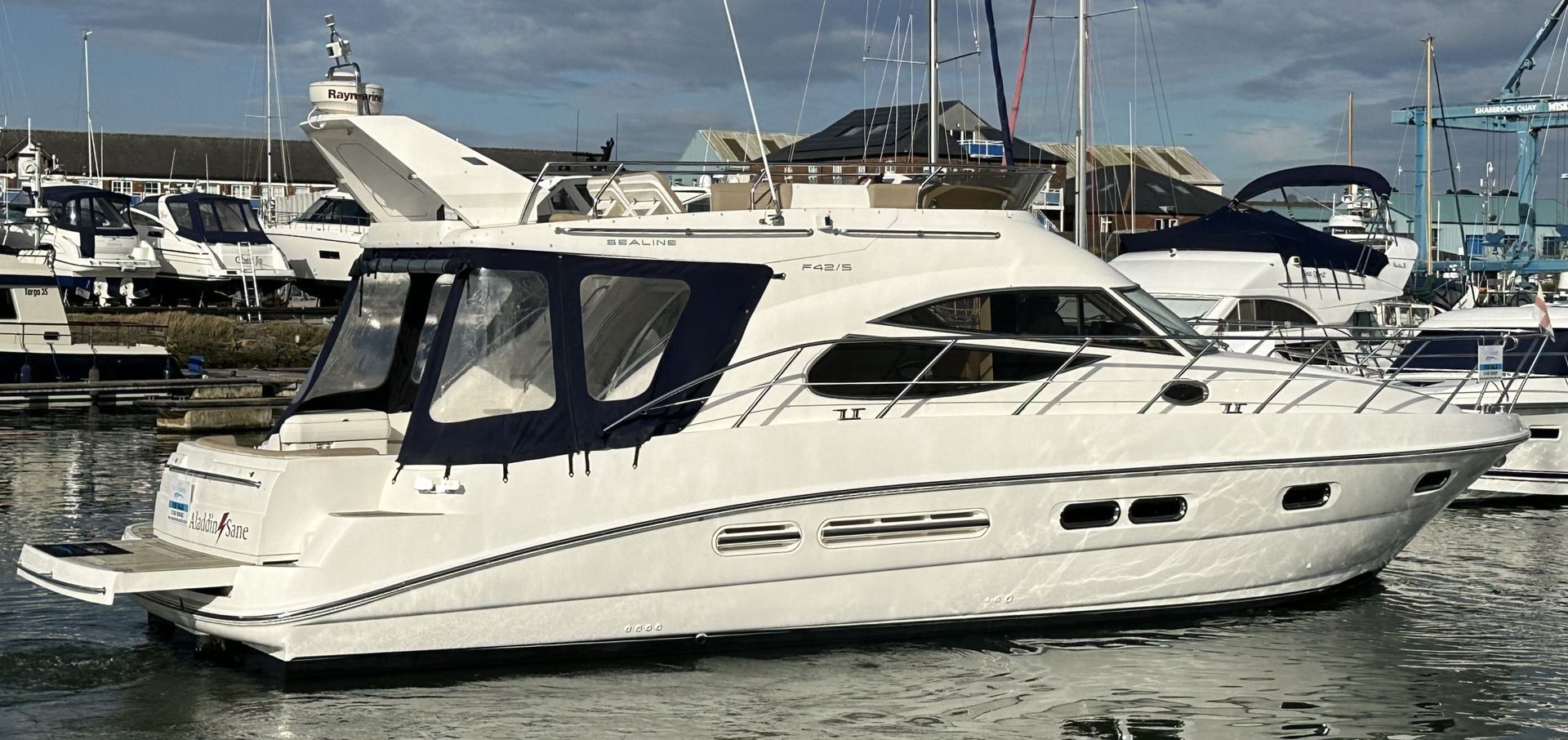 A great opportunity to purchase a classic Sealine F42/5 with a great inventory and SECS (Sealine Extending Cockpit System) that gives you the cockpit of a 60 footer for a mooring of a 42 footer.