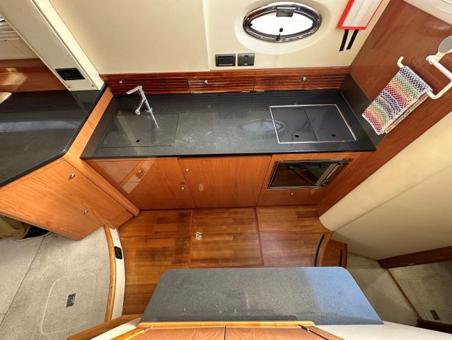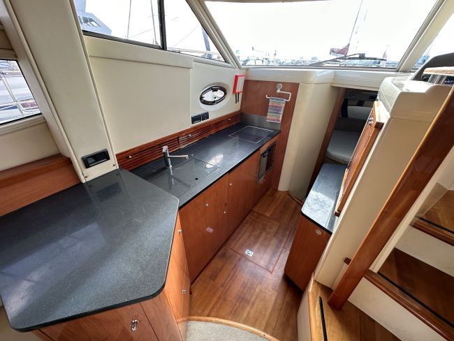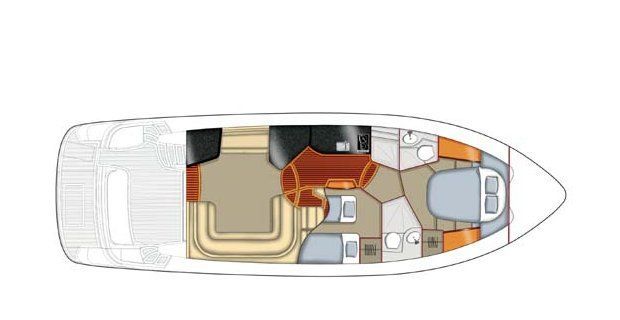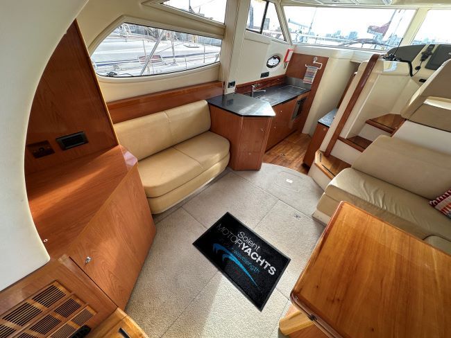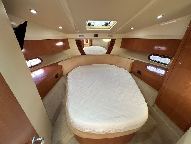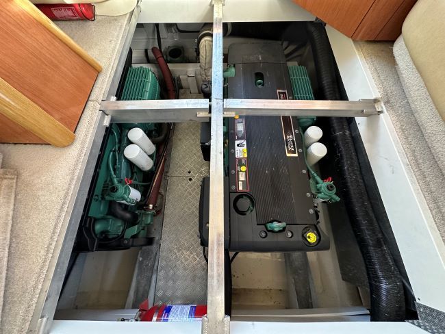 This example also benefits from the larger Volvo Penta D6-435hp diesel engines, bow and stern thruster on remote and is presented in excellent condition.