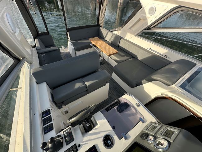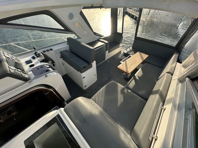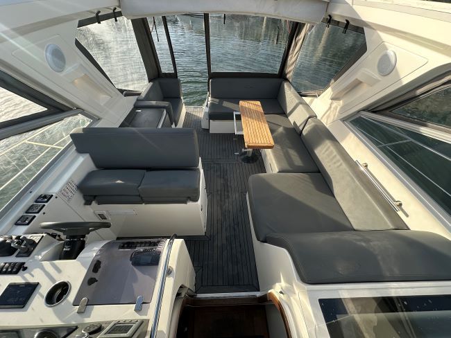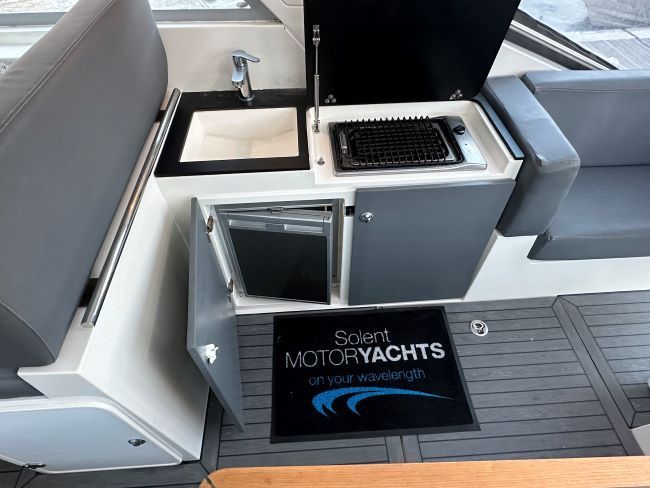 Cockpit wet bar with electric BBQ, fridge, sink and storage