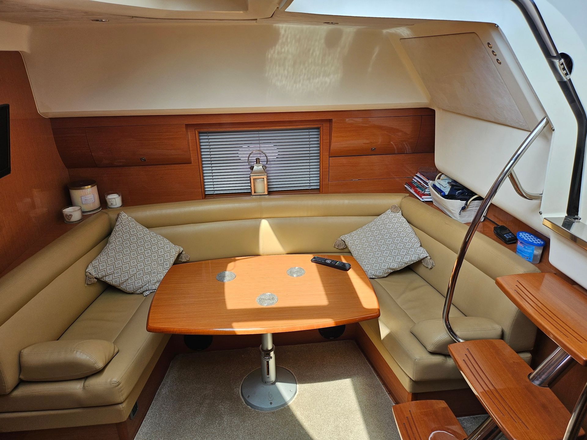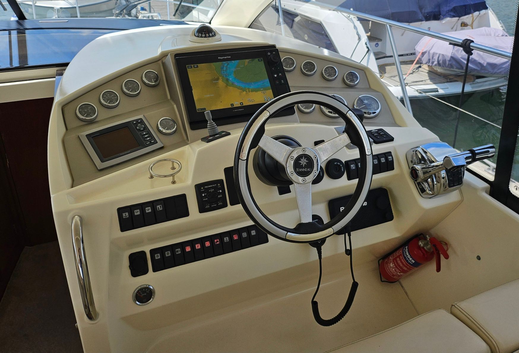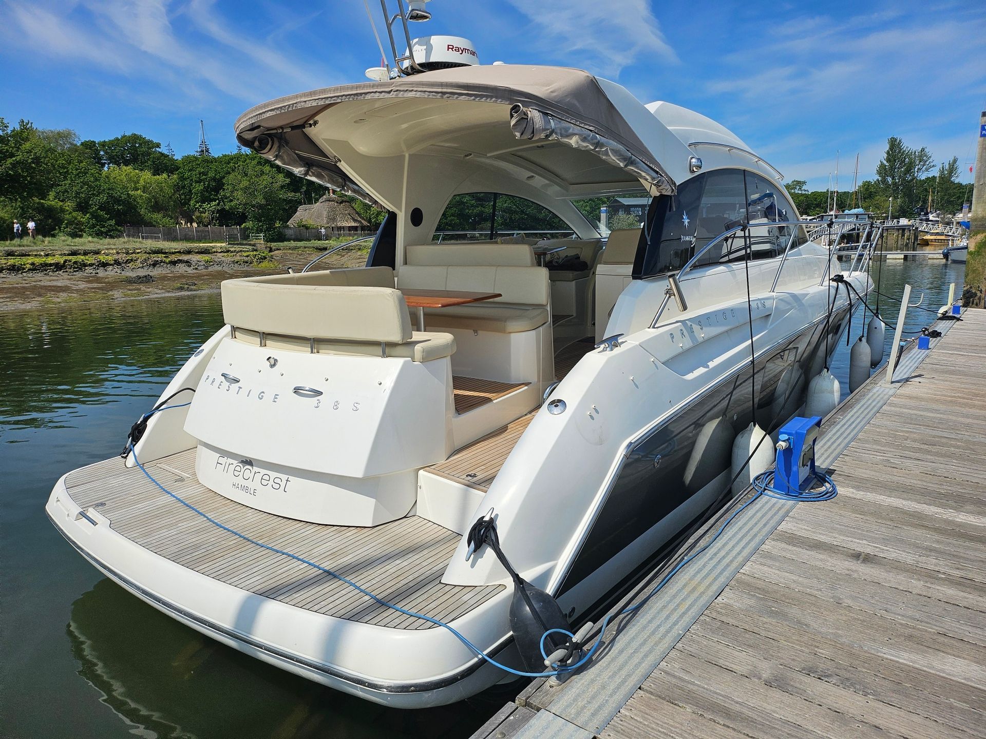 This is a great opportunity to purchase a great looking Jeanneau Prestige 38S with the popular sports hard top and the Axius premium package that gives easy control via joystick with the added bonus of Skyhook and an additional bow thruster to make mooring a breeze for all abilities of skipper.