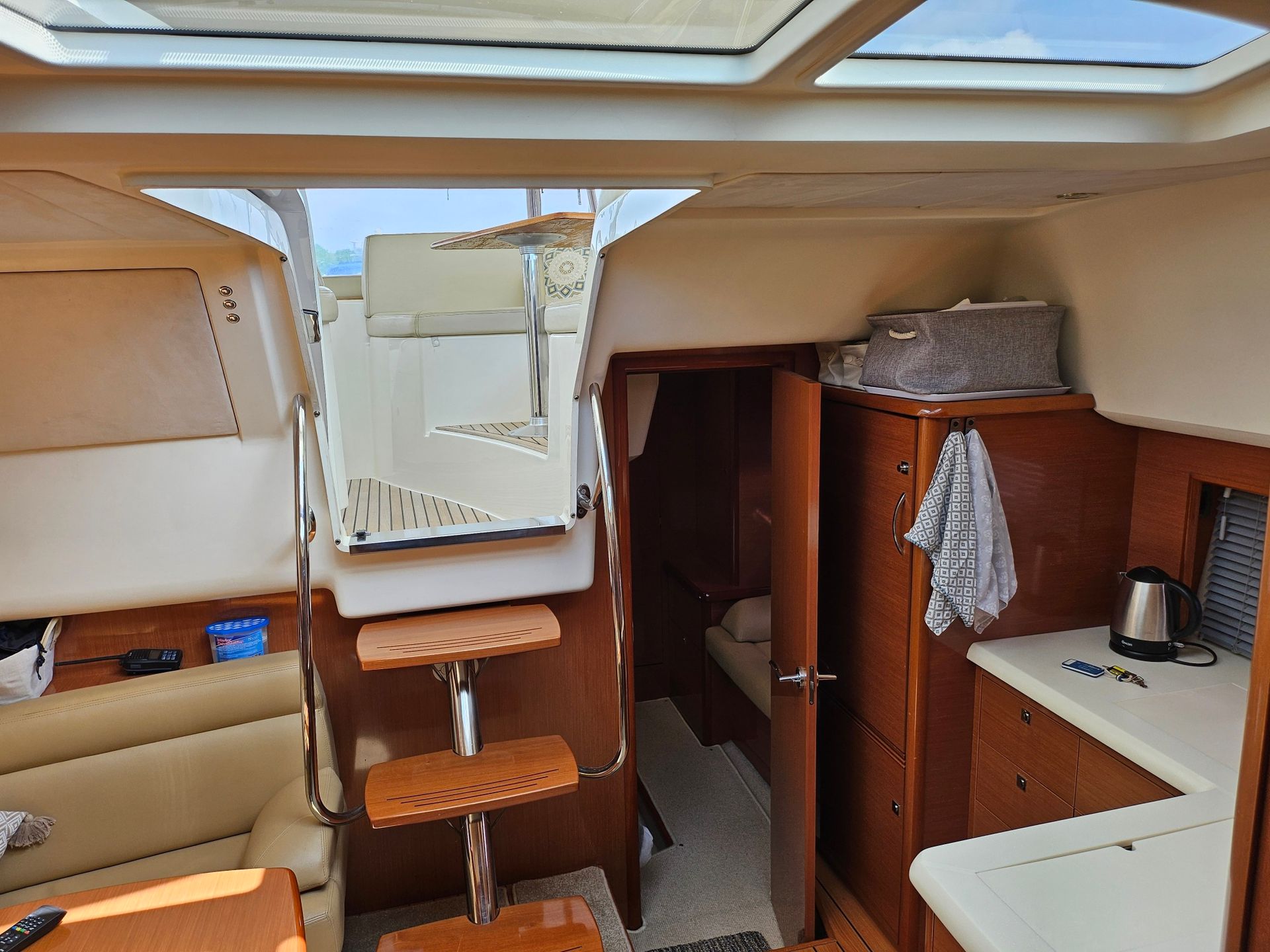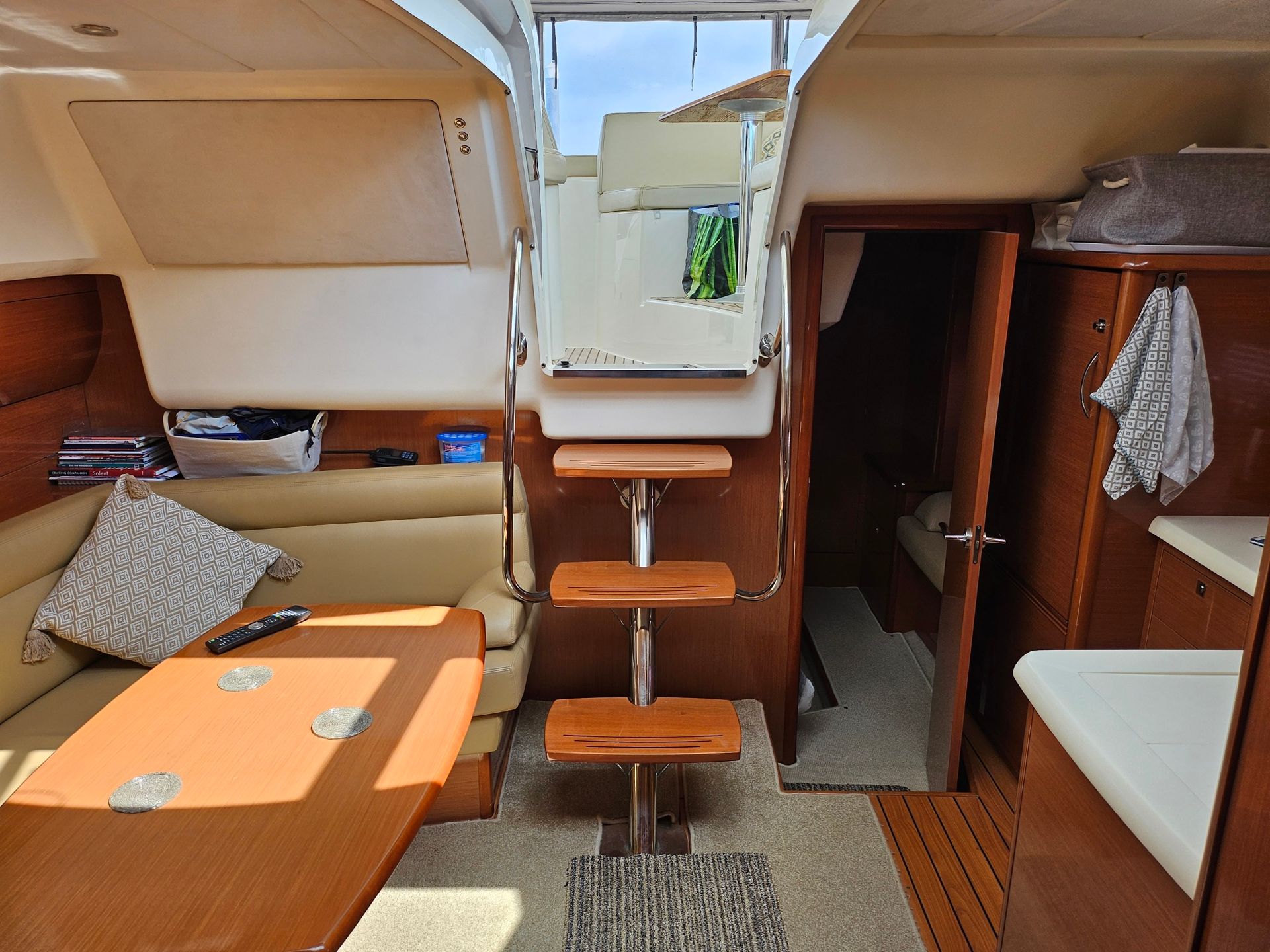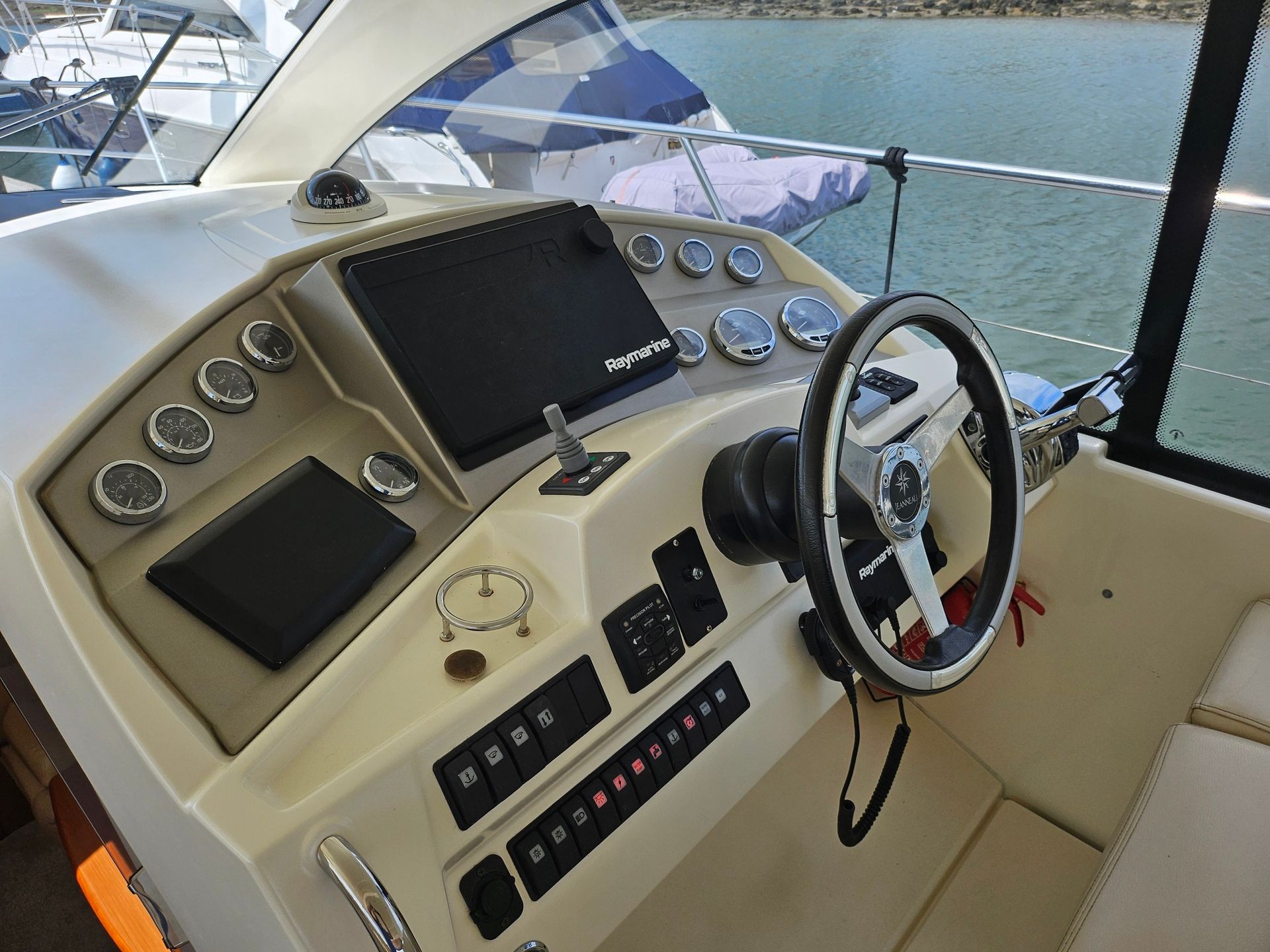 This is a great opportunity to purchase a great looking Jeanneau Prestige 38S with the popular sports hard top and the Axius premium package that gives easy control via joystick with the added bonus of Skyhook and an additional bow thruster to make mooring a breeze for all abilities of skipper.