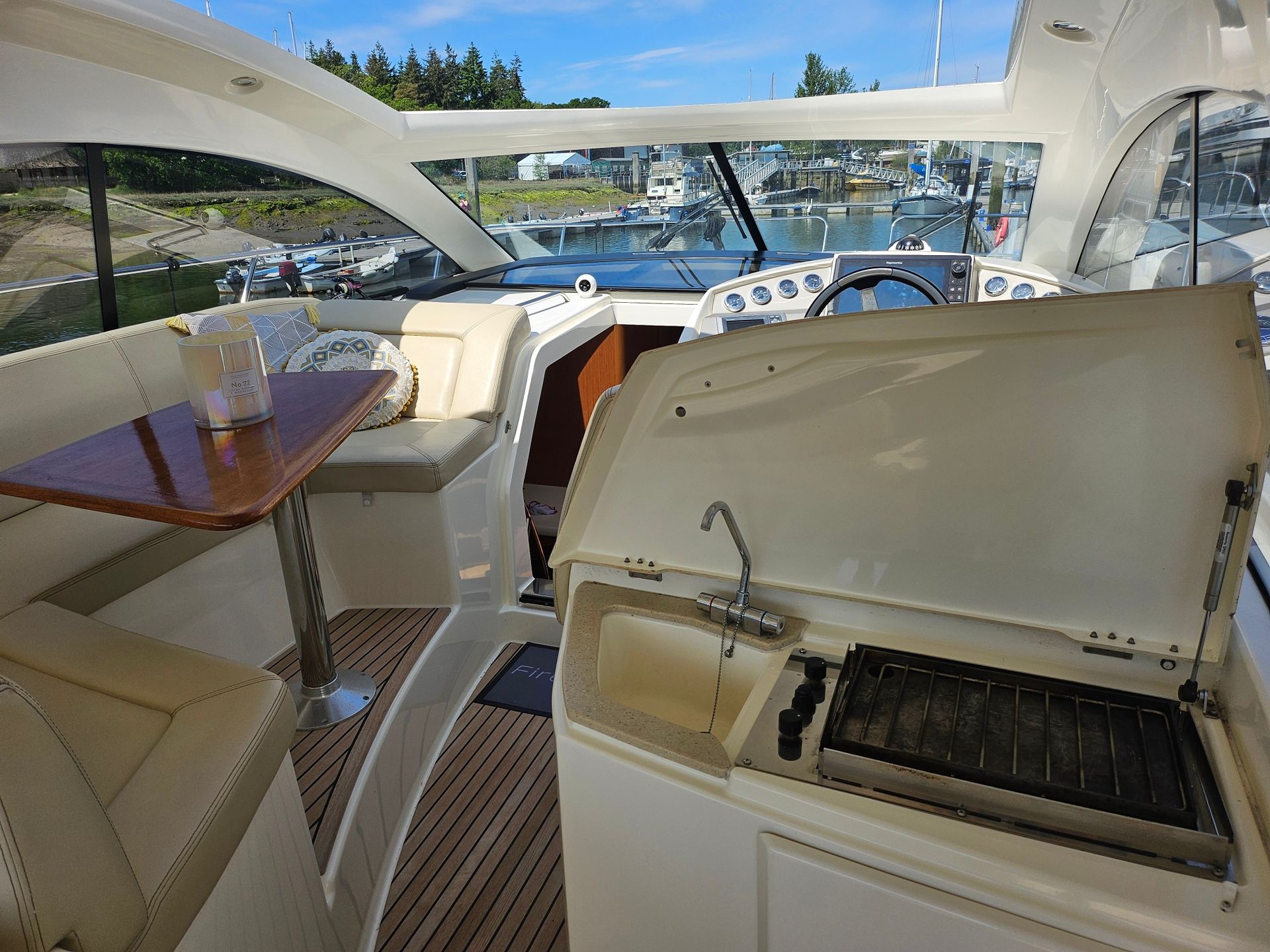 Cockpit wet bar with new gas BBQ, fridge and sink