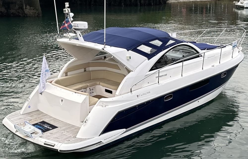 A great opportunity to purchase a much loved 2010 Fairline Targa 38 with 2 x Volvo D4 - 300hp, with all the extras you would expect including teak laid cockpit, wet bar with BBQ, sink, Garmin 5008 GPS/Radar plotter, Garmin Autopilot & DSC VHF, Bow thruster, new Webasto heating with remote control, fore deck sun pads and flat screen TVs in saloon and both cabins to name but a few.