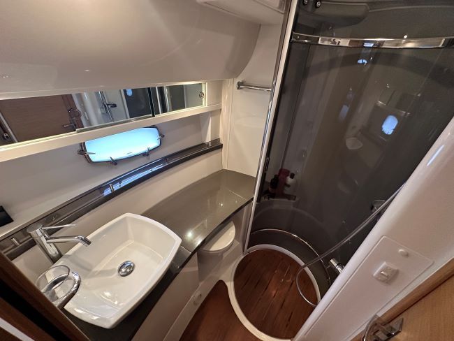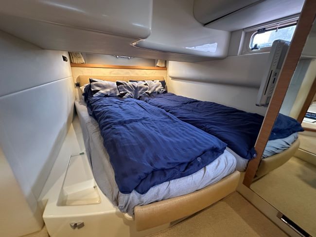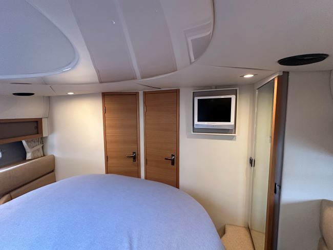 Double island forward master cabin, TV & DVD, plenty of storage and en-suite access to day head with separate shower.
