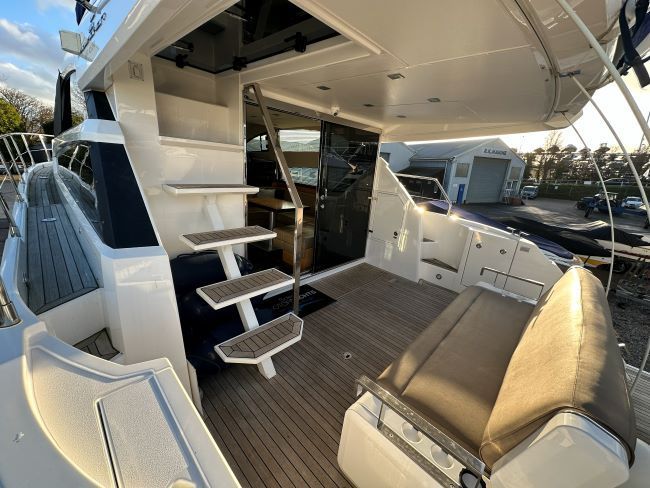 This is superb example of the ever popular Fairline Squadron 42. She comes complete with extensive specification with the larger twin Volvo Penta D6 - 435hp engines and a great inventory that is ready to cruise the South Coast in comfort and style.