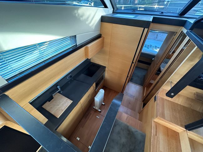 Flybridge wet bar with BBQ, ice maker, fridge and storage