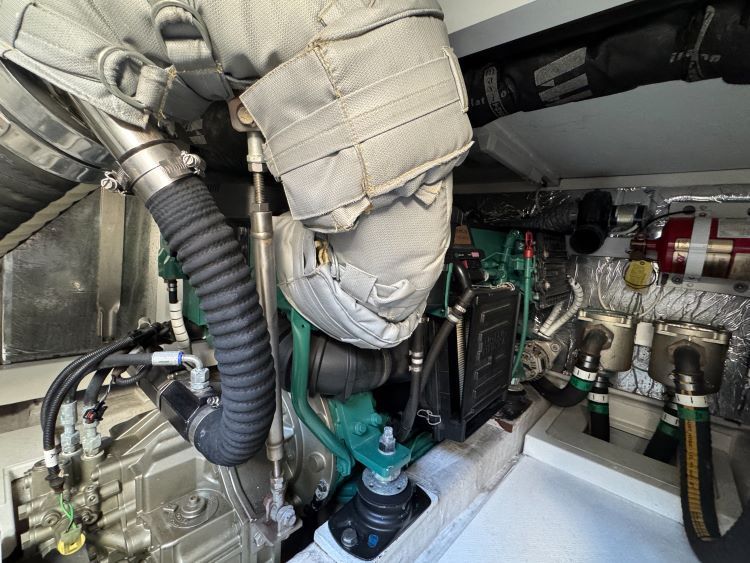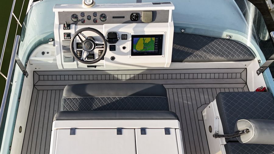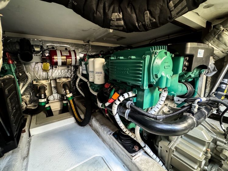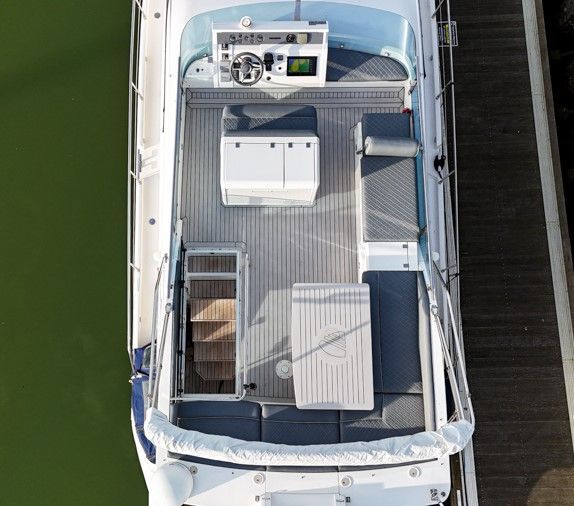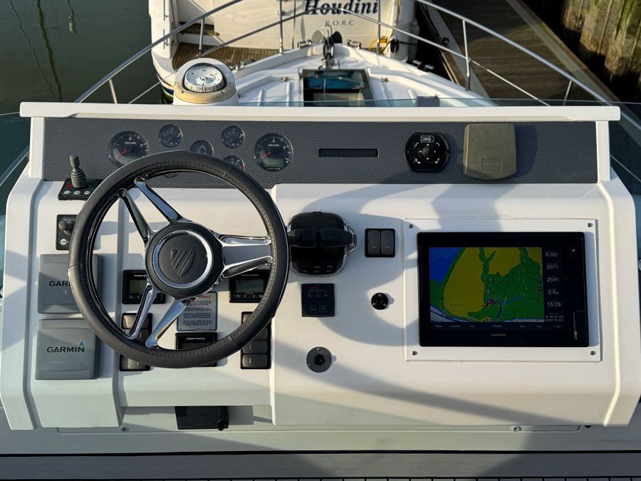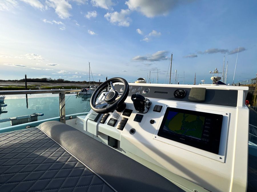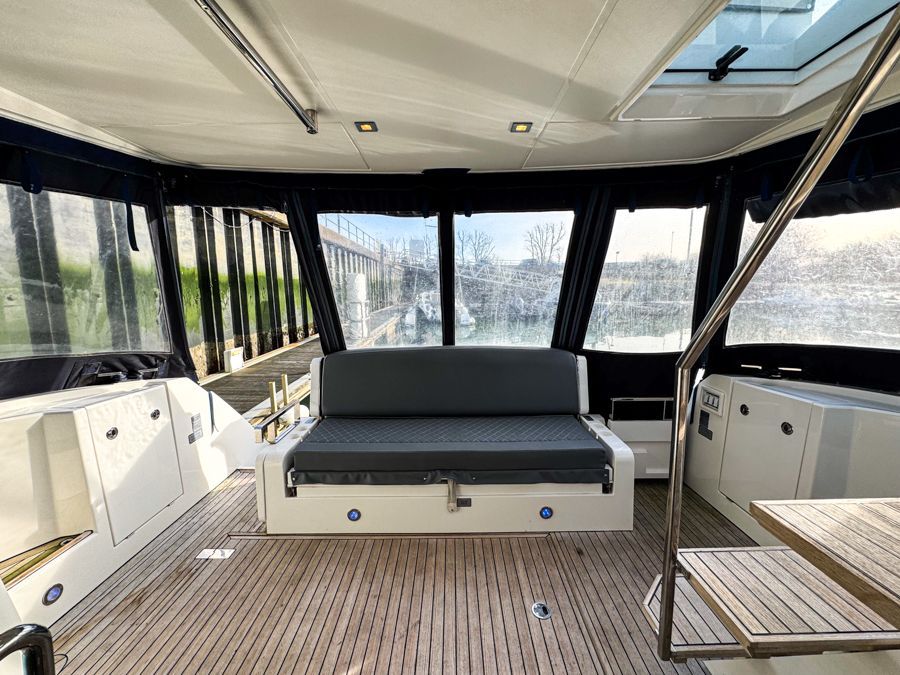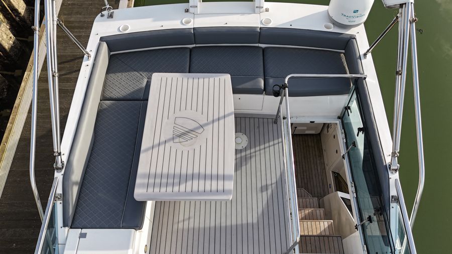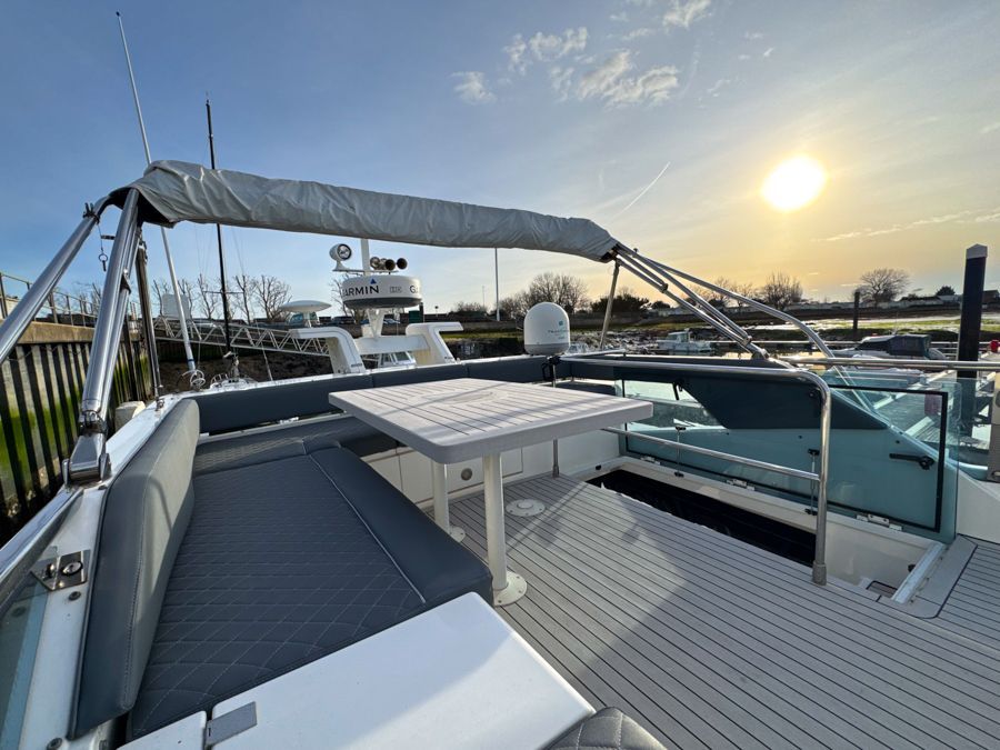Externally, the cockpit provides a spacious entertaining area, flowing naturally from the saloon, while the flybridge offers further seating and excellent visibility from the upper helm. The bow area adds another usable space for relaxing at anchor. The cockpit and flybridge upholstery have recently been renewed, giving the boat a clean, updated appearance.