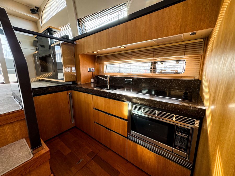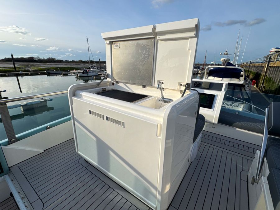 Flybridge wet bar with BBQ, ice maker, fridge and storage