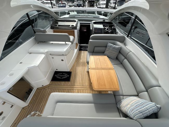 What an amazing opportunity to purchase a 2013 Sunseeker Portofino 40 with a massive inventory including the Joystick, Bow & Stern thruster, Hi-Lo platform, genny, air-conditioning, New Eberspacher diesel heating, Recent upholstery and full wet bar that is ready to cruise in the style and comfort that only a Sunseeker can offer.