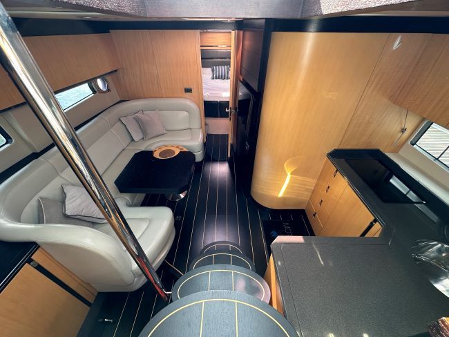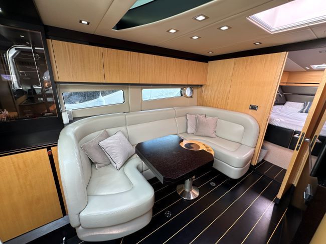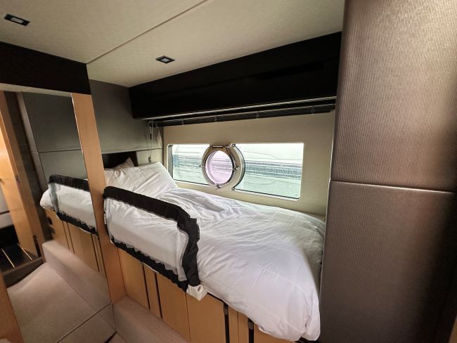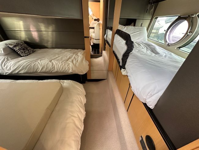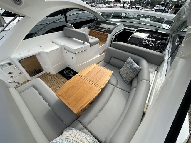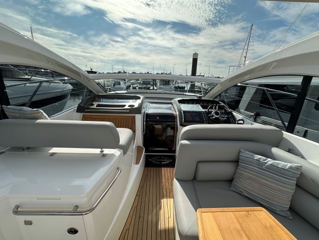 The Sunseeker Portofino 40 delivers ultra-responsive handling and thrilling acceleration which is something to behold, especially with the sunroof open, creating over 5 square metres of open space, its a true open boating experience. When entertaining, the spacious and sociable cockpit enjoys a beautiful teak table and fully-equipped wetbar. Below deck, the well-proportioned galley enjoys plentiful natural light and intelligent storage. The master cabin has impressive headroom, space and light, whilst the aft cabin with 3 single berths. With hand-stitched detailing, handcrafted cabinetry and spacious accommodation, its a craft built without compromise.