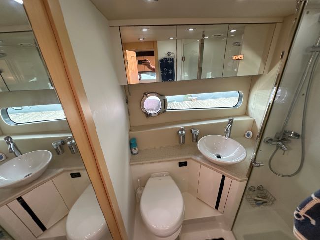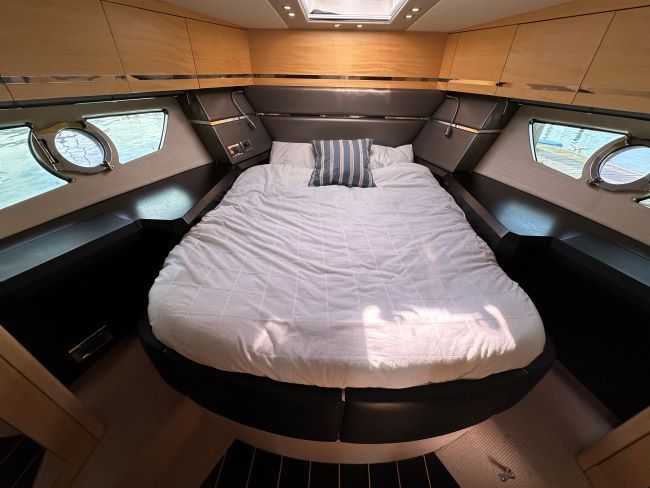 Large forward master cabin with island double with en-suite access to day head, plenty of storage