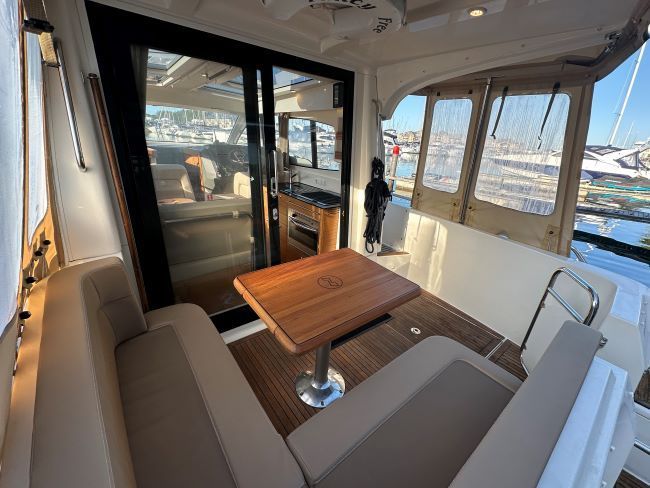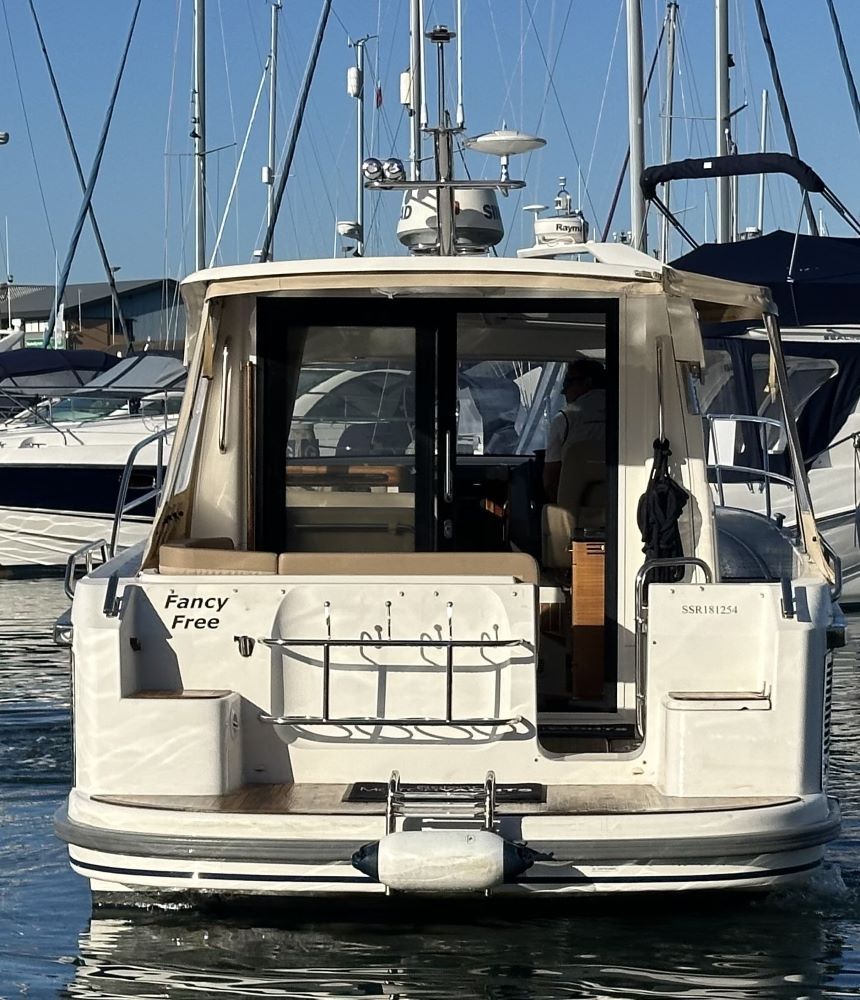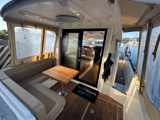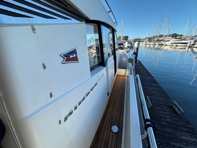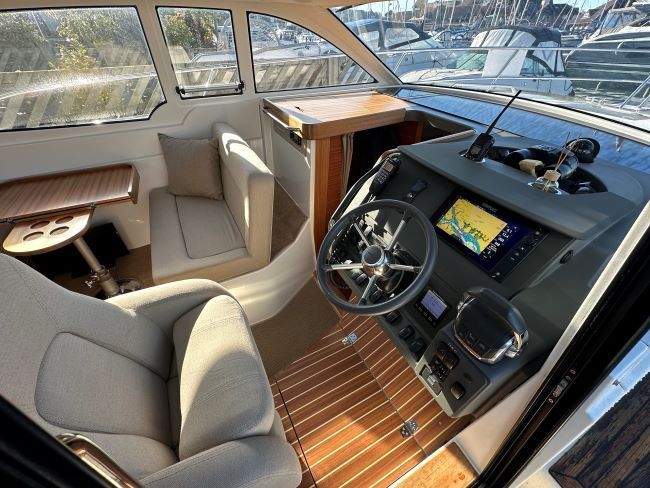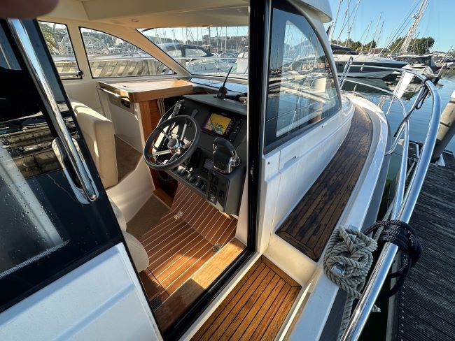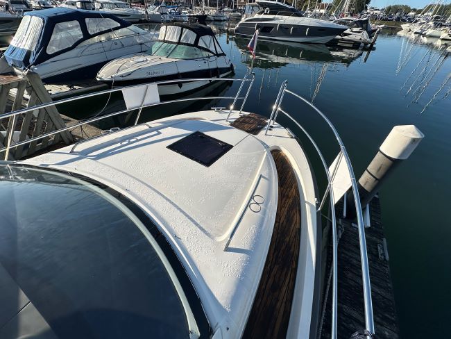 This example is in fabulous condition and benefits from a custom rear cockpit enclosure that allows a easy access up the side deck from the cockpit, if you do not wish to go through the helm door. She needs to be viewed to be appreciated.