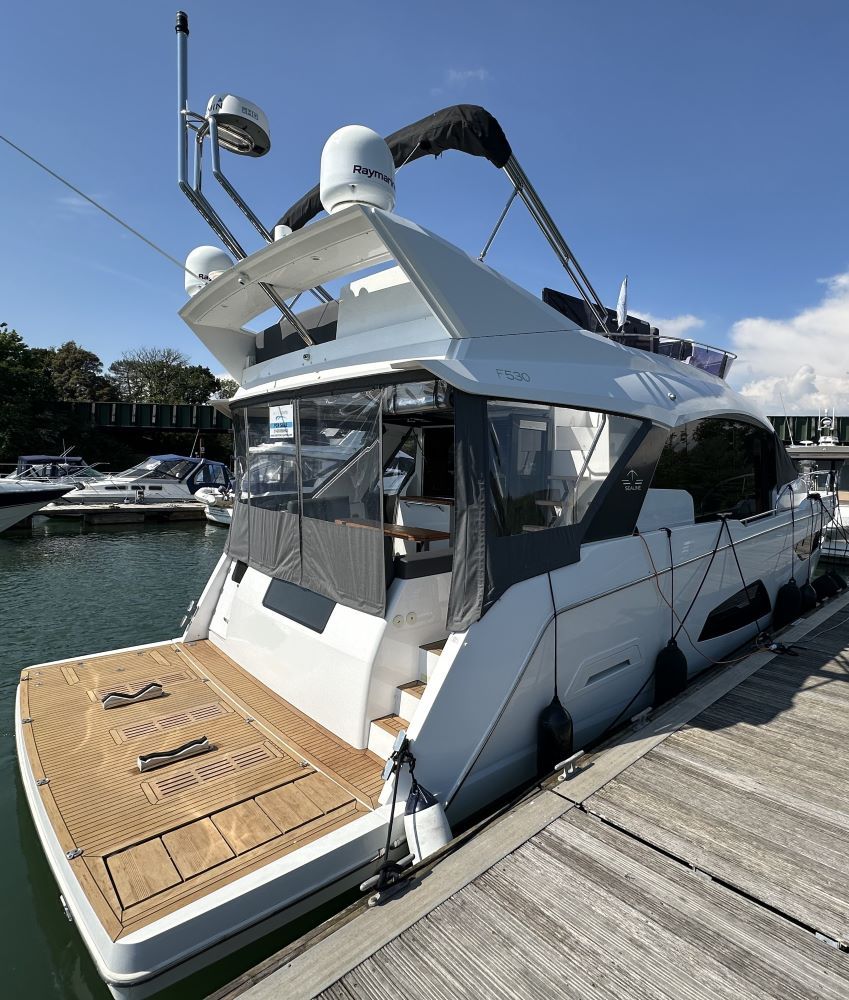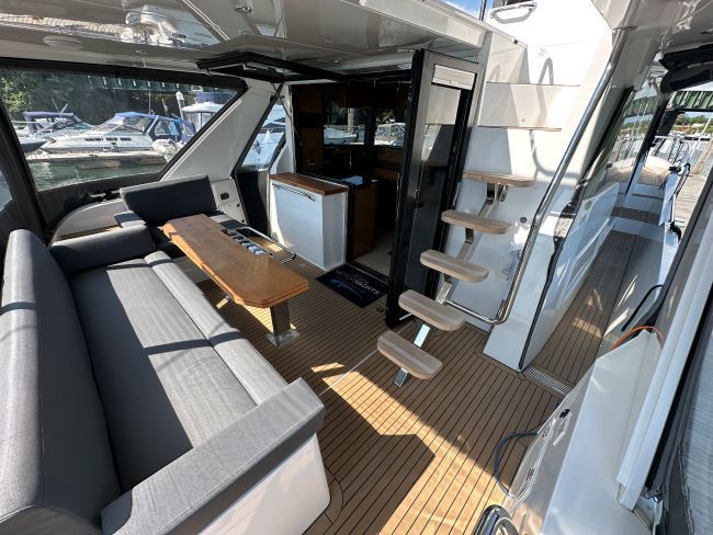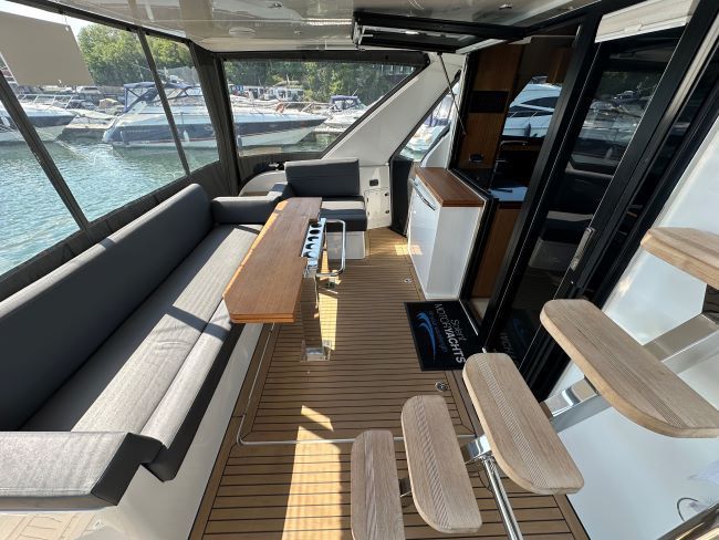 With her flybridge extending right aft, the SEALINE F530 sets the standard in her length class. Charismatic lines and the distinctive SEALINE windows define her exterior design. And topping it all off perfectly is the flybridge. The sheer space it offers, the varied seating landscapes and the open-air galley with grill and fridge make it a noble world of experience in itself. At this level, luxury runs through the entire yacht – from the cockpit to the sun deck at the bow via the spacious saloon. In three elegantly-equipped double cabins and two bathrooms, each guest is offered an opulent space of their own. The owner's suite extends amidships over the entire beam. Charming details such as the chaise longue at the window define her interior, which is handcrafted from meticulously selected materials. Aft, you have the choice between an externally accessible crew cabin or a storage space.