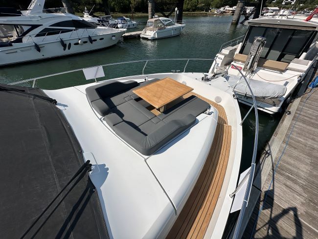 Flybridge infill cushion to make large sunpad incorporation the co-pilot seating