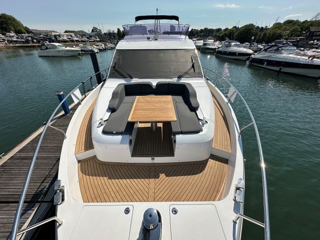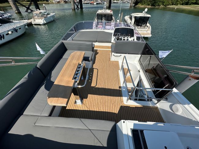 Flexi Teek synthetic decking to flybridge, side & fore decks, cockpit and bathing platform