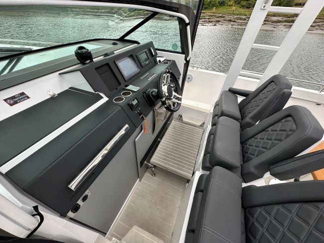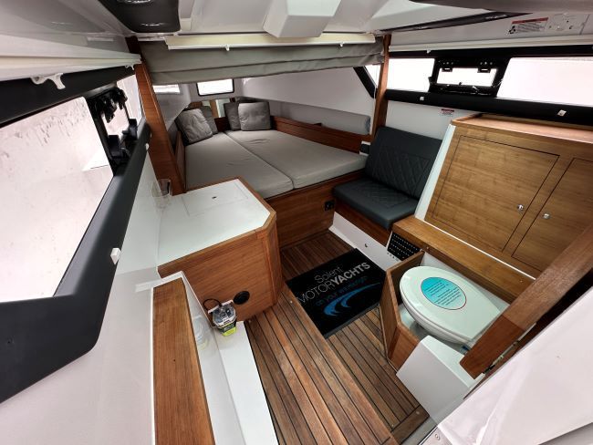 This model features a comfortable front cabin with queen sized double berth, head and the optional aft cabin for 4 berth making overnight trips a breeze.