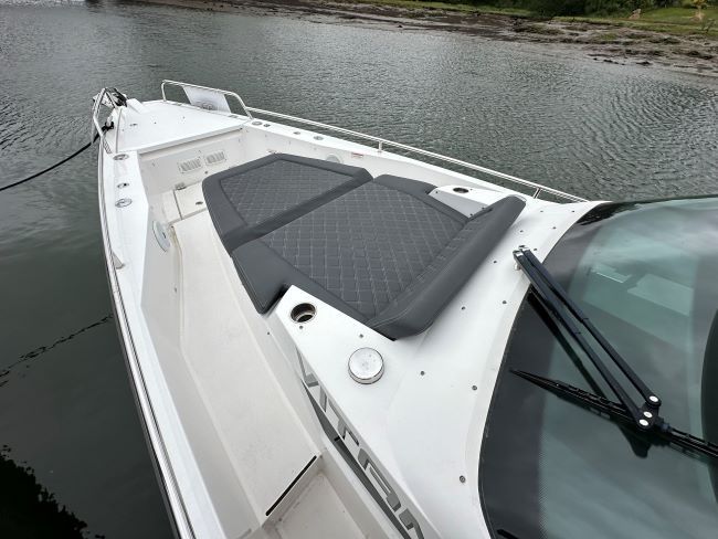 Fore deck seating and sun pad with option bimini for shade while at anchor
