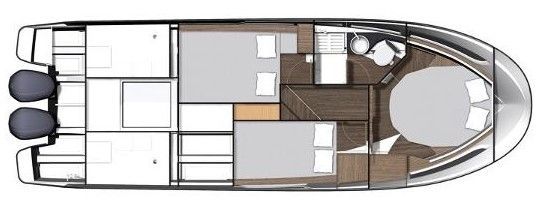 The Jeanneau Merry Fisher 1095 Coupe really has to be viewed to fully appreciate the ground breaking layout that offers 3 double cabins!