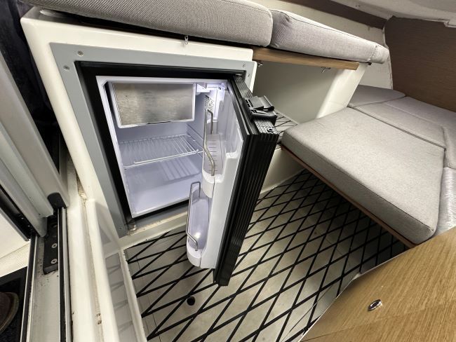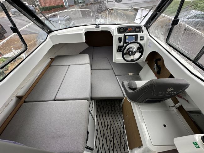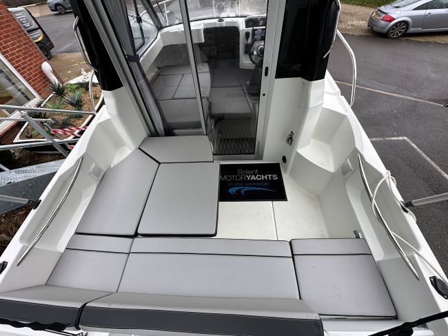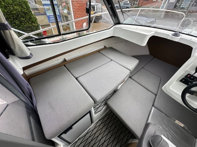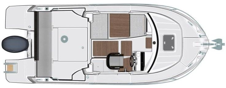 The JMF605 features an interior design layout for 4 people, with: two double berths, a saloon with facing seating and views of the sea, a large cockpit sundeck, a panoramic view through large windows with sliding openings both sides and a small openings hatch in the roof, a sleek, stylish design and an energy efficient, high-performance outboard engine. Easily transportable, the Merry Fisher 605 is built for beautiful days at sea.