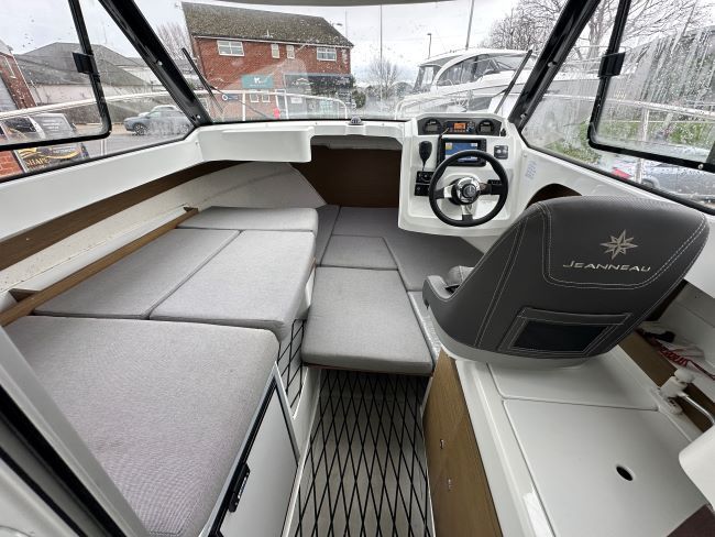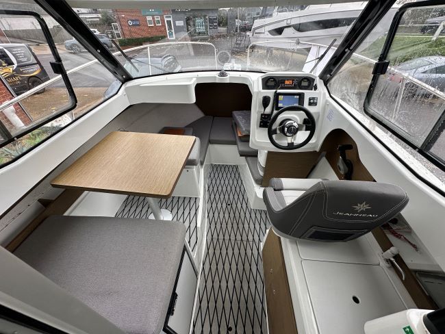 Large self draining cockpit with sliding aft bench seat to allow engine to clear water when not in use