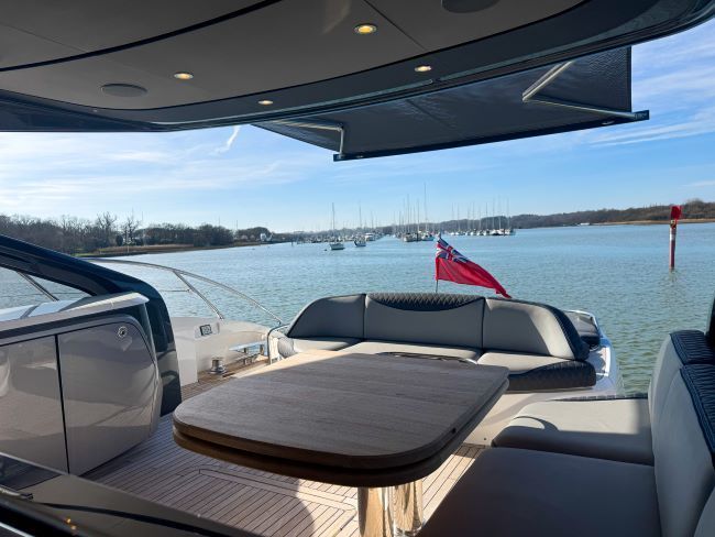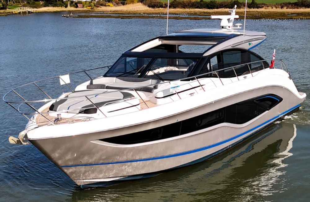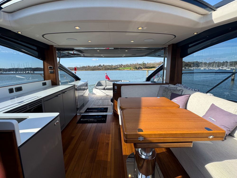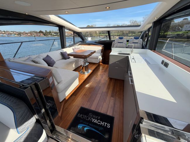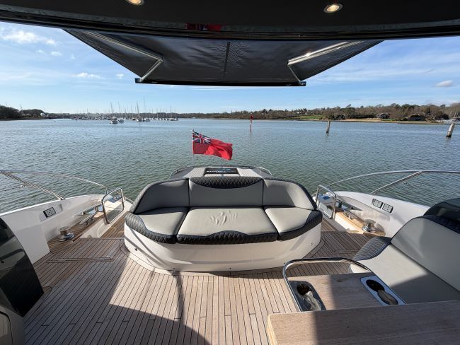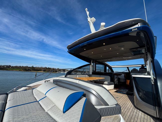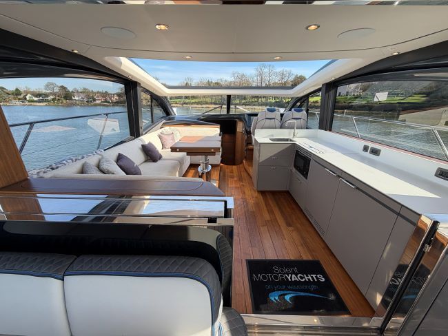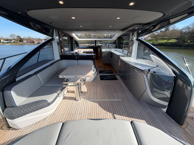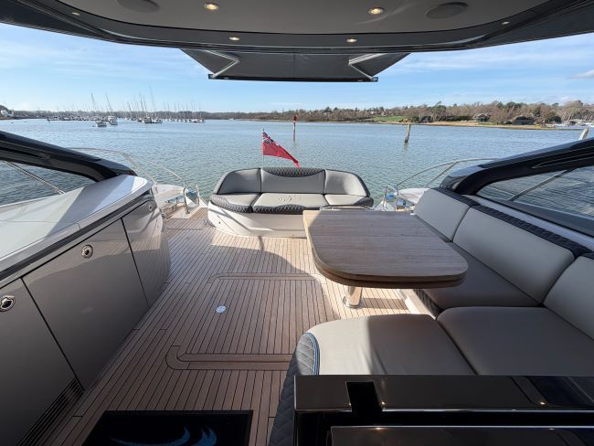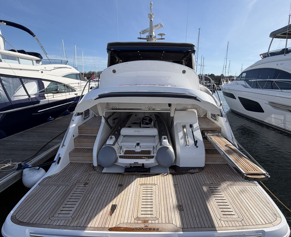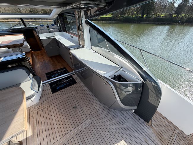 This example has been fitted with a very high specification including SeaKeeper 9 Gyro stabilizer, variable speed bow and stern thruster with hold function, Passerelle, Teak decking all over, Full twin max Garmin navigation suite with reversing camera autopilot and dsc vhf, air conditioning throughout, generator, TV’s and Naim surround sound throughout, tender garage with Williams tender launch system and 2023 William 345 TJ, opening roof and hi-lo patio doors to name but a few.