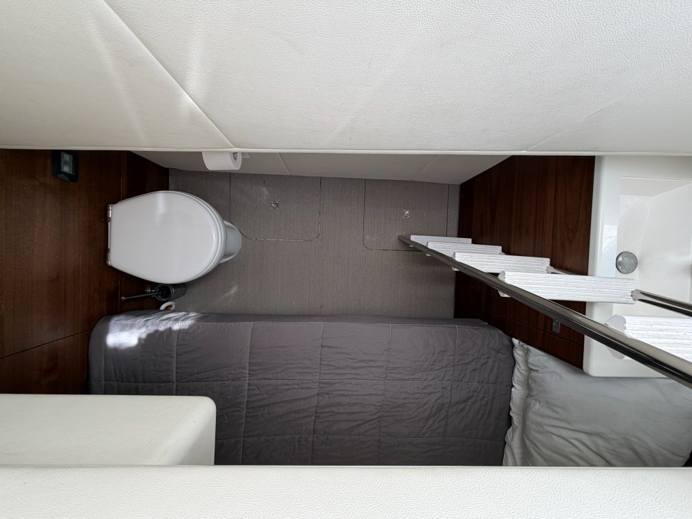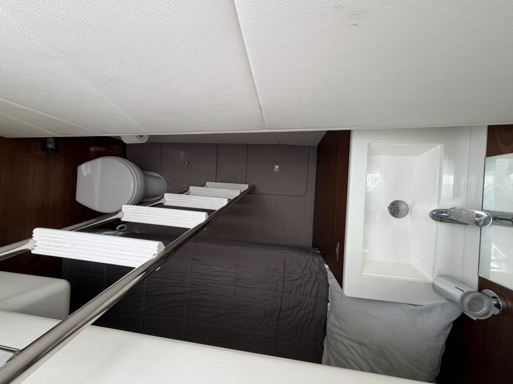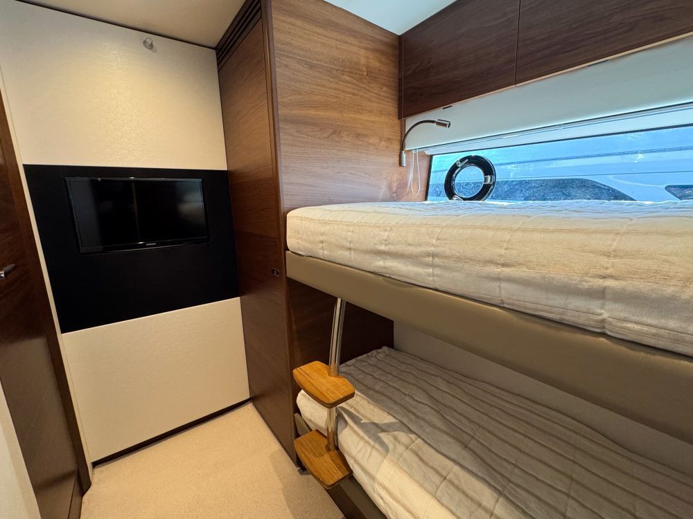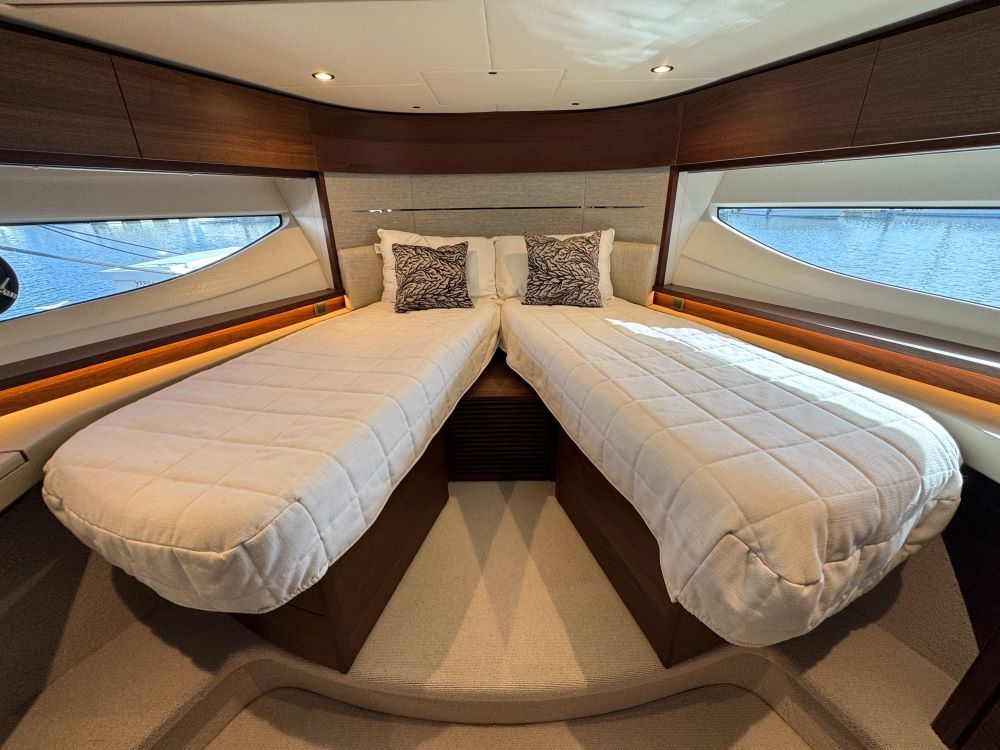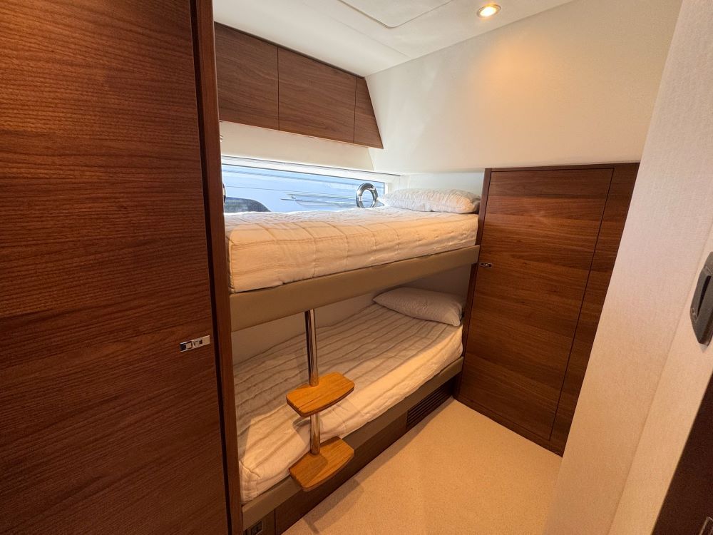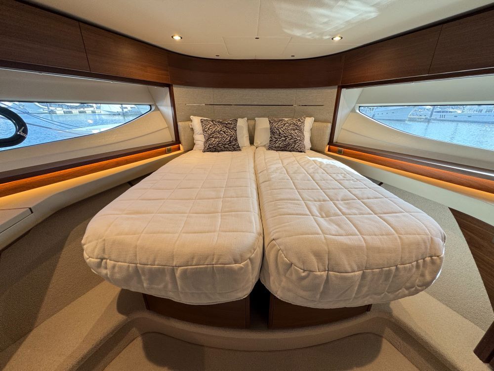 Her large full beam owners cabin features a en-suite head with lots of storage and beautiful décor, The forward VIP cabin is also a good size and shares en-suite access to the day head, cabin 3 has a twin-bunks.