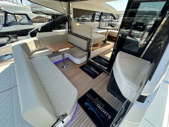 This is a stunning Fairline Targa 45 GT powered by the larger twin Volvo Penta IPS650 - 480hp engines capable of over 30knots plus the benefit of the Joystick combined with DPS and Dock assist to make low speed and single handed handling a breeze that has the build quality and finish expected form the luxurious Fairline brand.