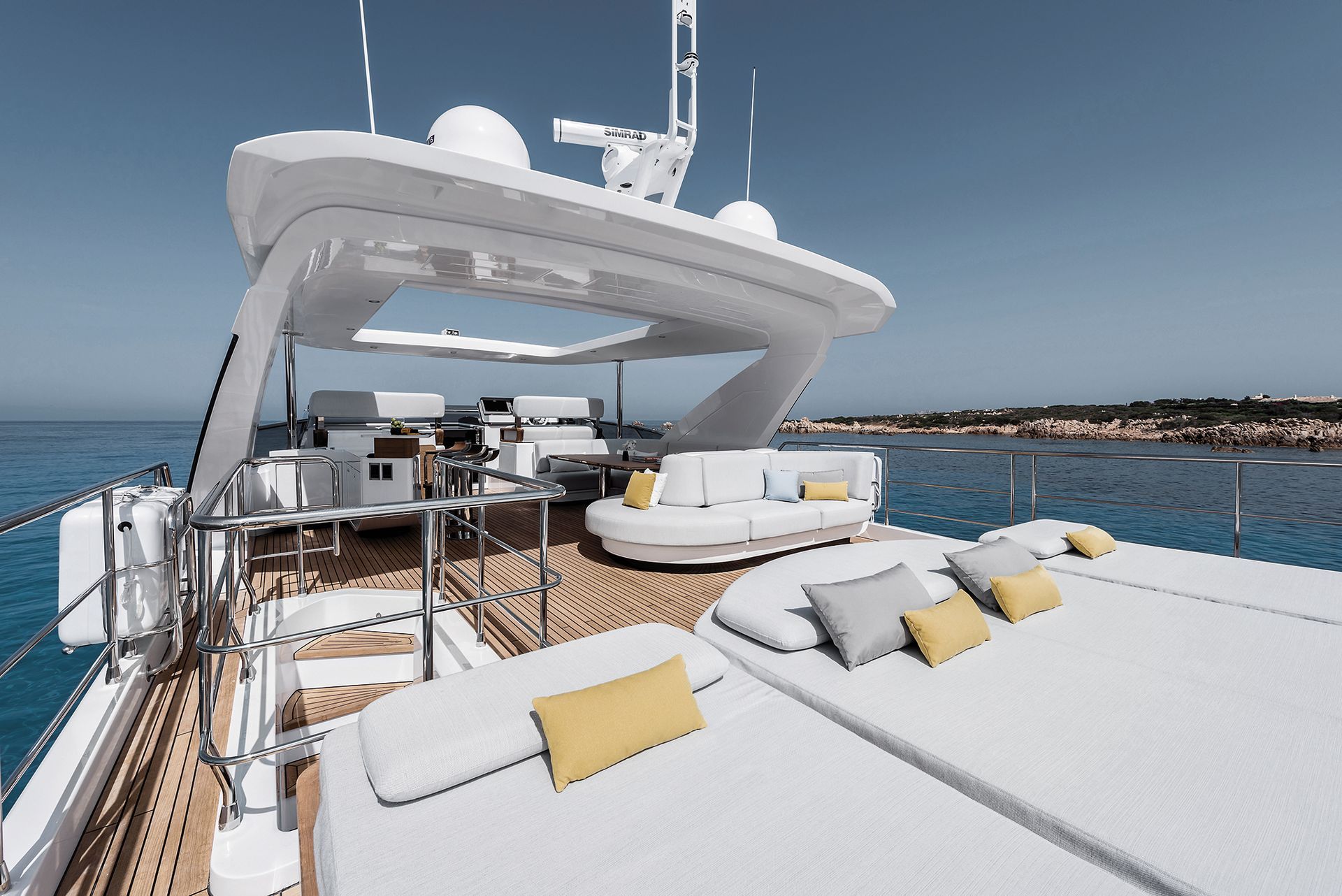 Conceived to give life to the extraordinary, the Grande 26M is another innovative masterpiece from Azimut, premiered at the Cannes Yachting Festival in September 2022. A fluid layout made of multiple levels empowers and frees the senses while encouraging an intimate discourse with the surrounding sea, such as the cockpit area, which may be expanded to create a luxurious leisure terrace. Strategically-designed spaces grant complete privacy, suggesting a superyacht-inspired sophistication.